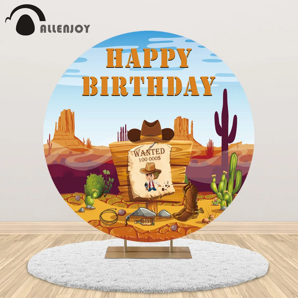 Allenjoy круглый фон с изображением ковбоя в западном стиле для детей на день рождения пустыни кактус украшение круг фон для фотосъемки
