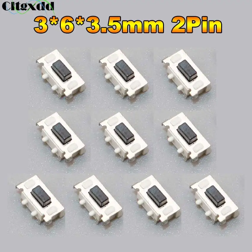 Cltgxdd 10 шт. SMT 3x6x3, 5 мм 2-контактный тактильный тактовый микропереключатель мгновенного действия 3*6*3,5, питание планшетного ПК на кнопочный сенсорный переключатель