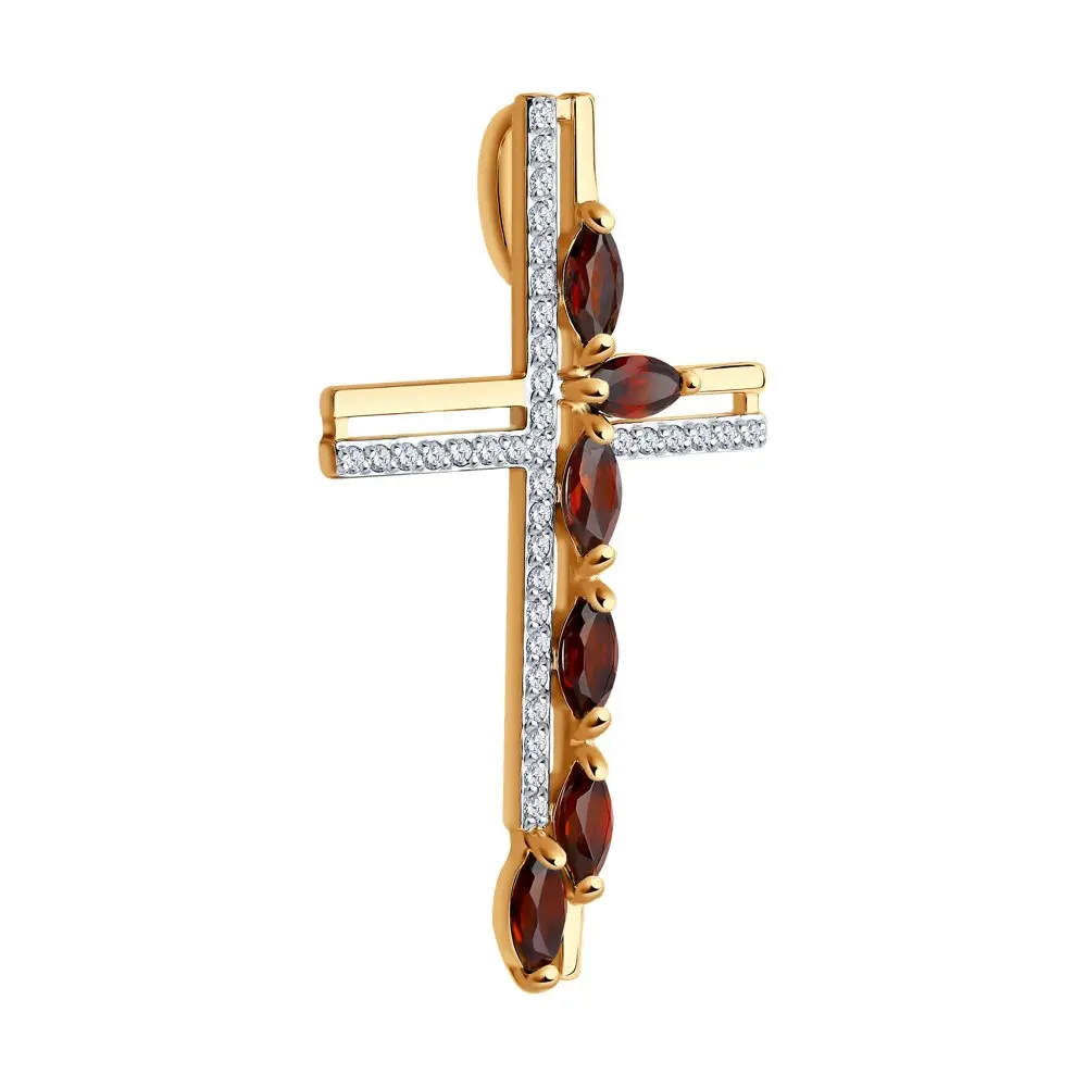 Подвеска SOKOLOV из золота с гранатами и фианитами, Золото, 585, Оригинальная продукция