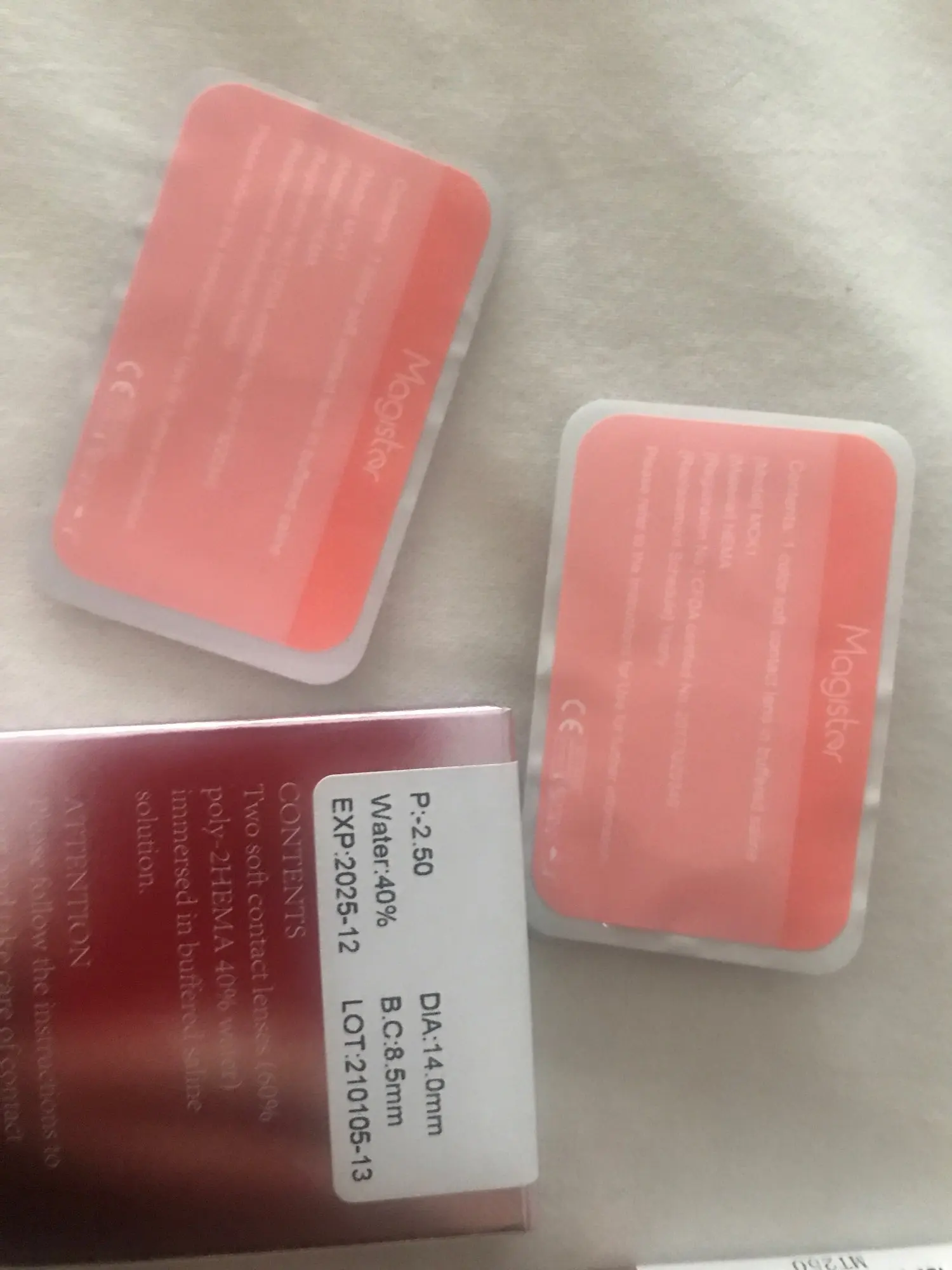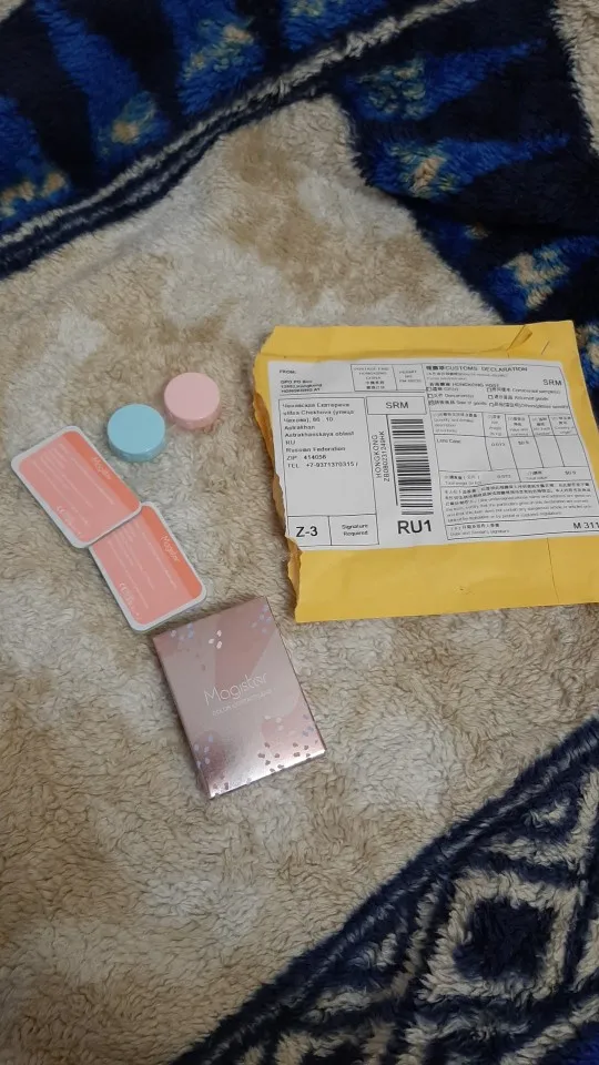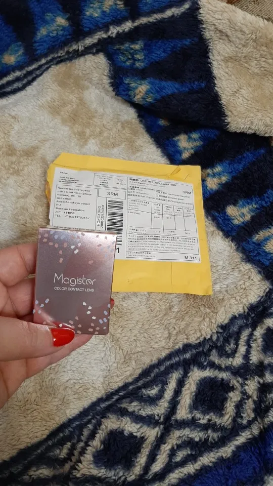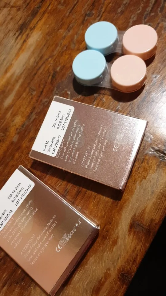 Стандартная доставка aliexpress 1 месяц с отслеживанием. Взяла сразу три пары, положили в подарок 2 симпатичных контейнера для линз. Упаковано в 3 стильные коробочки, из которых одна слегка помялась. Линзы - годовые. Срок годности до октября 2025. Радиус 8.5мм. У меня радиус 8.6мм, но разницы не чувствую. Отличные мягкие линзы.