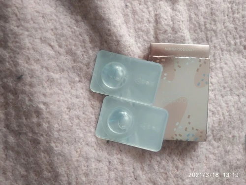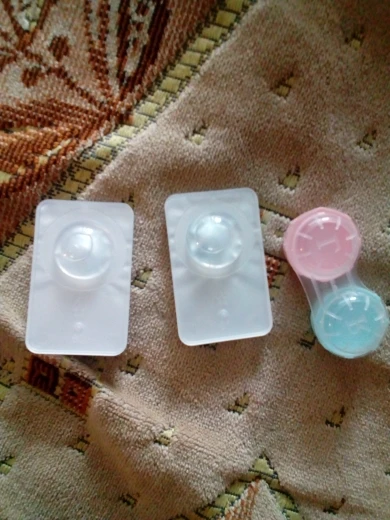 В подарок купон на бесплатную пару линз со штрих-кодом и контейнер для хранения линз. Я заказывала бесцветные и решила поэкспериментировать со значением - ношу -4, заказала -3,75. Вижу в них нормально, но за рулём такие не надену. Обычно 8,8, а здесь 8,5, как-то не очень влитую, соскальзывают. Напоследок - всё же жестковаты по сравнению с Acuvue (но и по цене, естественно, дешевле). Сомневаюсь, что снова их закажу, у меня капризные глаза - слишком чутко реагируют на подобные новшества.