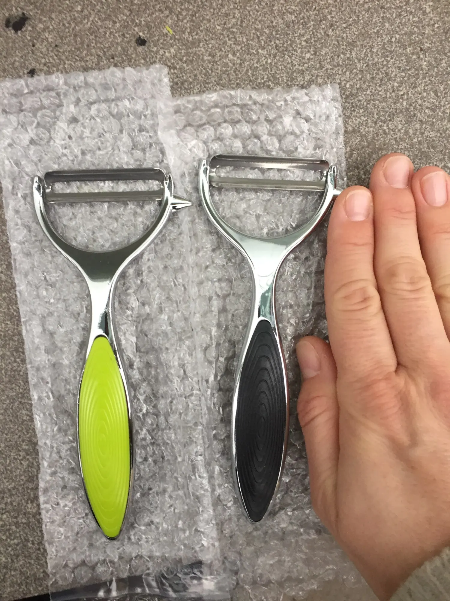 Отличные овощечистки, одна с гладким лезвием, другая с зубчиками. Качество на первый взгляд хорошее, лезвие на ощупь острое. Продавец очень быстро обработал заказ и также быстро отправил. Посылка отслеживалась и была доставлена в Московскую область в течение трех недель. У этого продавца можно заказывать, все понравилось