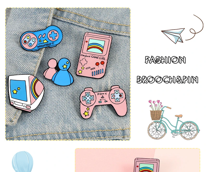 Розовая игра Девушка эмаль шпильки Компьютерный дисплей геймпад брошка мультфильм джинсовая рубашка отворот Pin 90s винтажный Забавный значок ювелирные изделия для детей