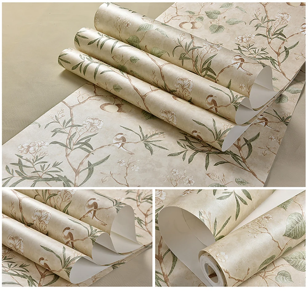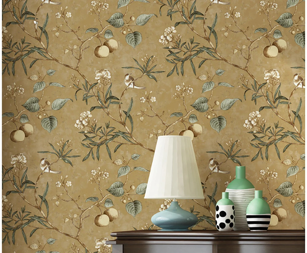 Античные обои с изображением цветов птиц, яблони, спальни, гостиной, нетканые сельские обои с принтом W82
