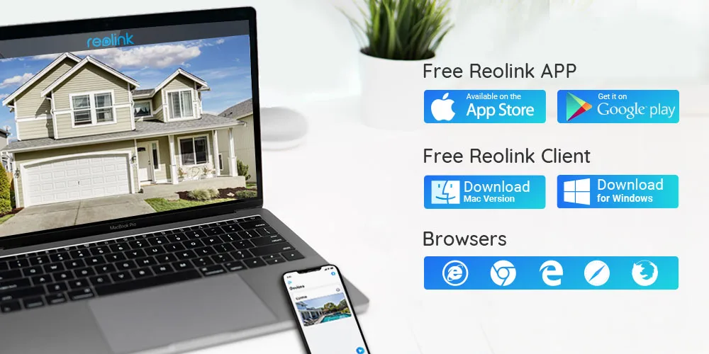 Удаленный доступ к ip-камере, чтобы увидеть просмотр в реальном времени и записи через бесплатное приложение Reolink на вашем мобильном устройстве, бесплатный клиент Reolink на вашем компьютере, веб-браузеры (т. Е. Google Chrome, Microsoft Edge, Safari, firefox и т. д.).