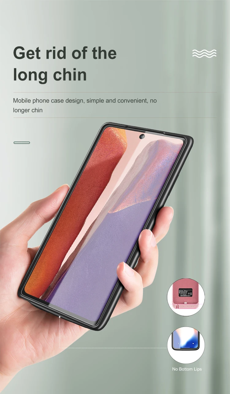 Продукт специально разработан для Samsung note 20 power case, придающий вашему телефону особый стиль. Креативный дизайн, вы можете использовать свой телефон, не снимая чехол питания. Между тем, высококачественный материал для защиты вашего телефона, 2 в 1 Зарядка и защита. Более того, дизайн интегральной схемы, эффективно Избегайте коротких замыканий или неправильной работы. С умным переключением и точным дисплеем питания, чтобы продлить срок службы встроенного аккумулятора.