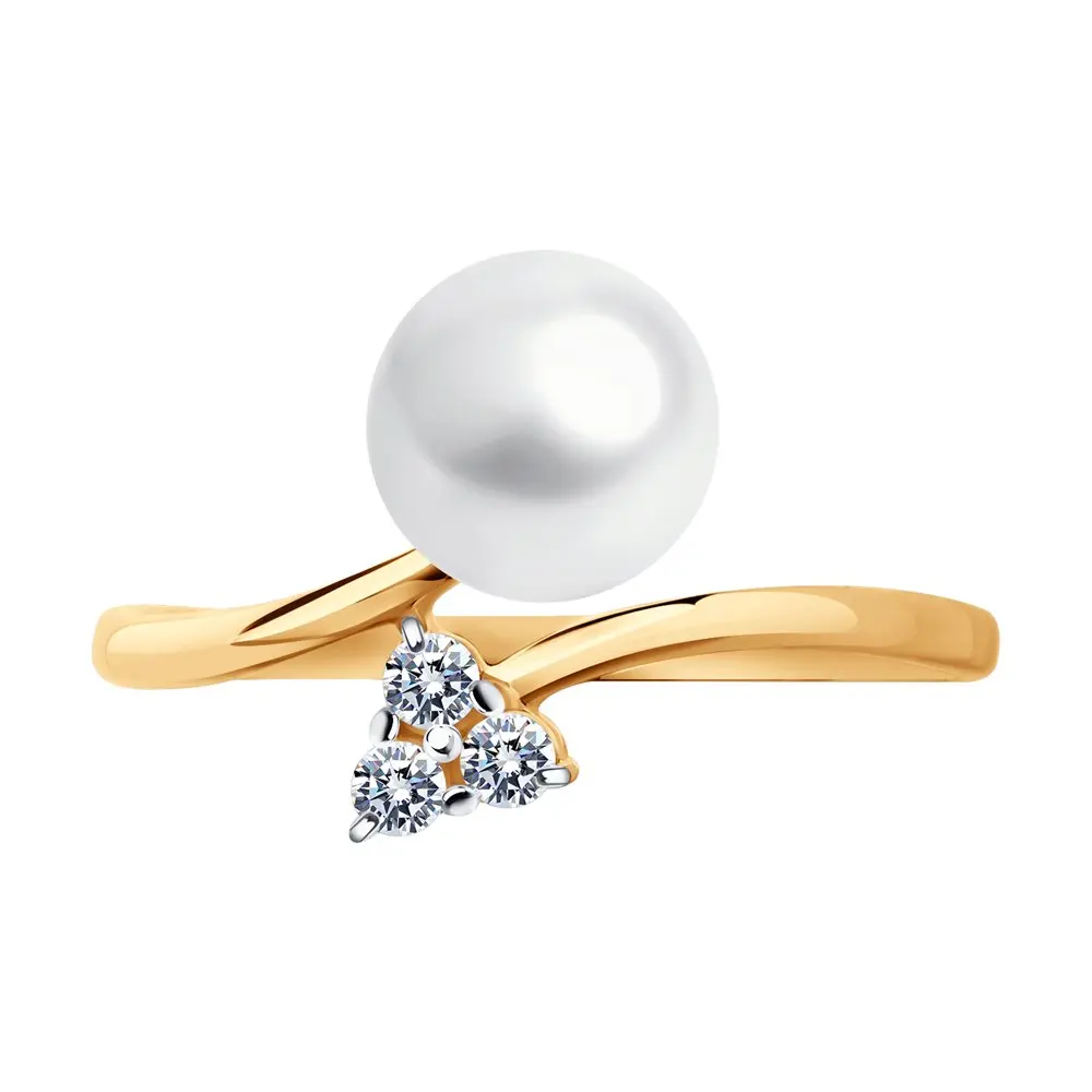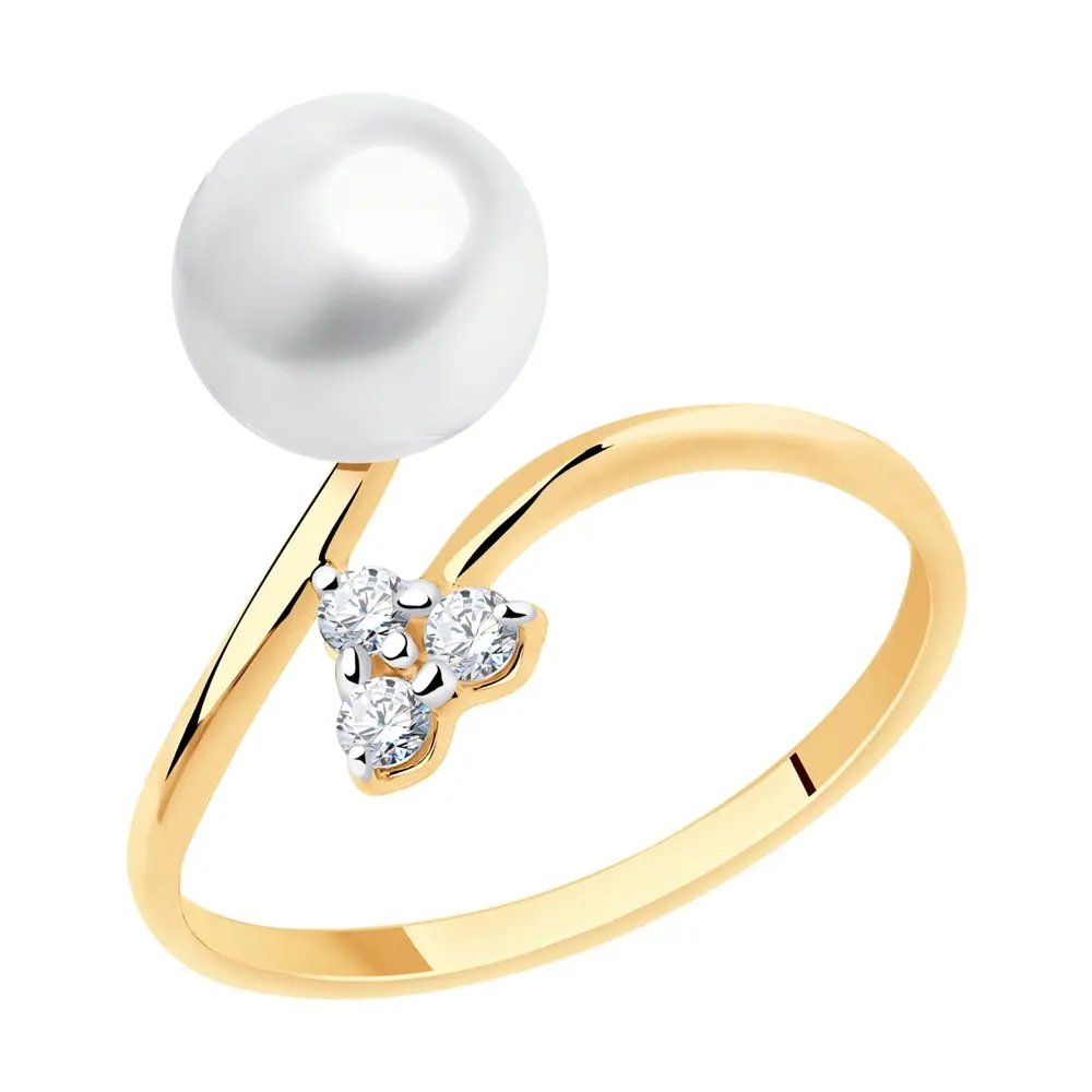 Кольцо SOKOLOV из золота с жемчугом и фианитами
