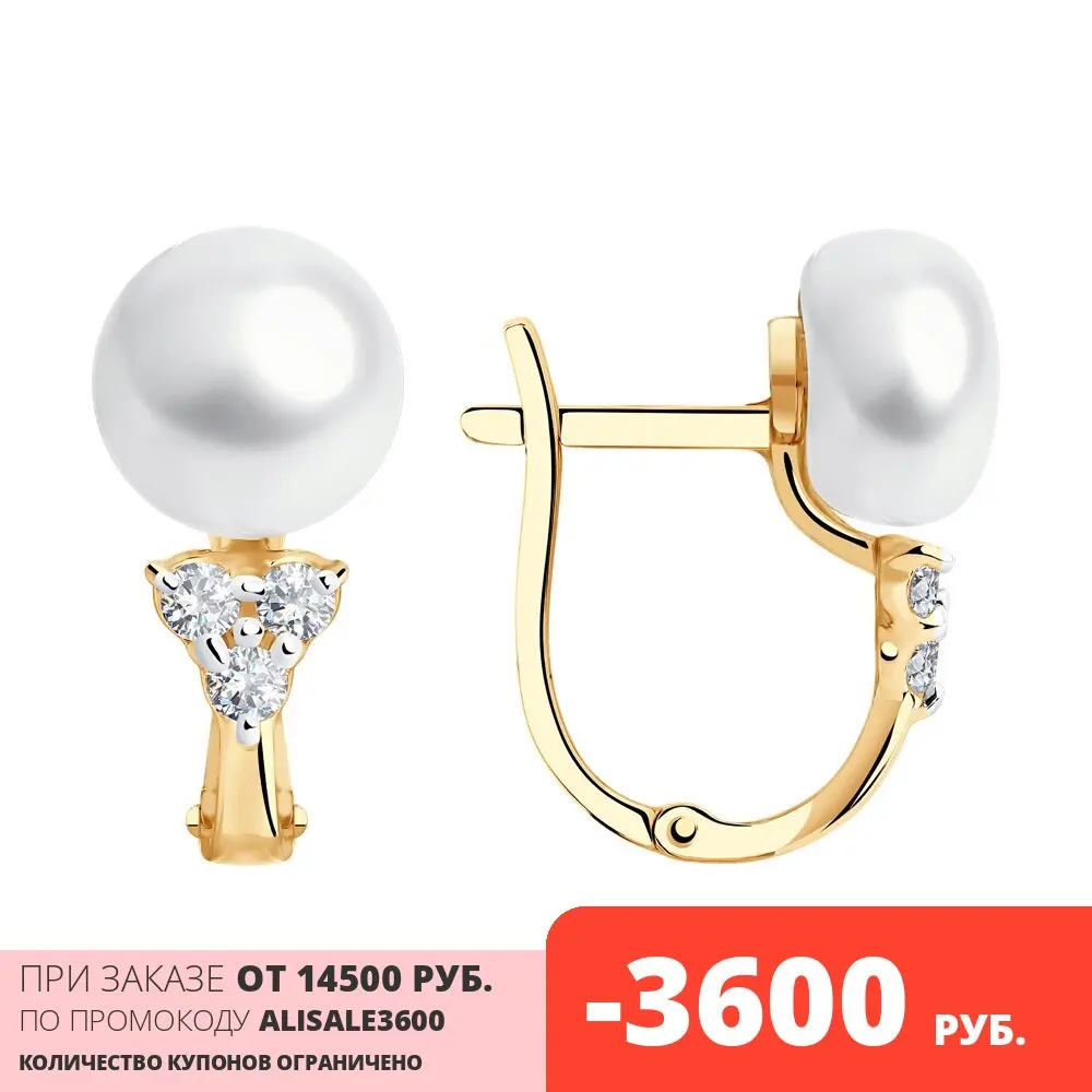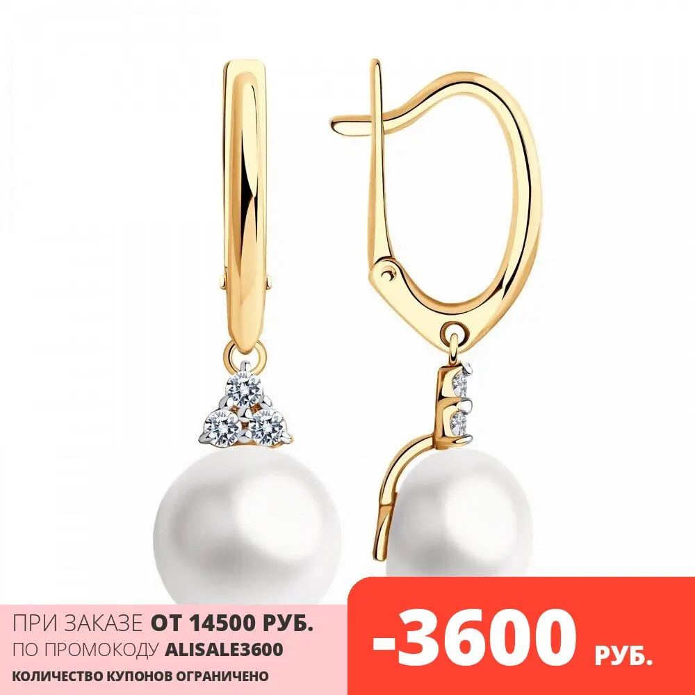 Серьги SOKOLOV из золота с жемчугом и фианитами, Золото, 585, Женские, Серьги 2022 тренд, Оригинальная продукция