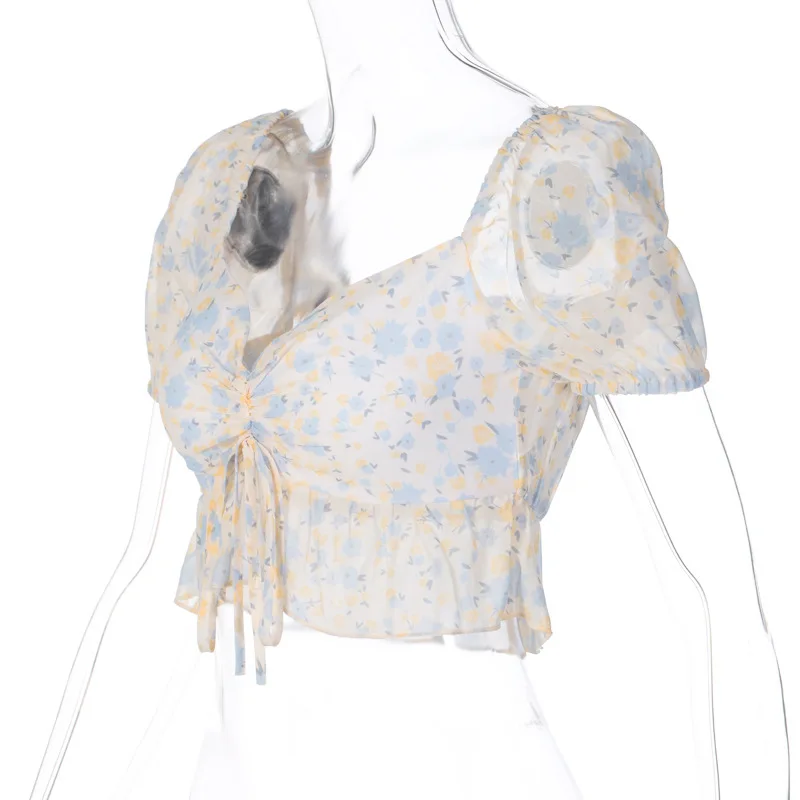 Кроп-топ женский с цветочным принтом, шифоновая блузка с коротким р...