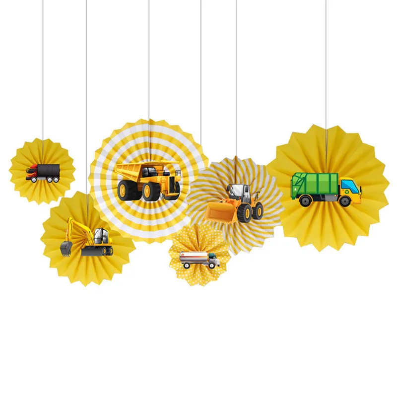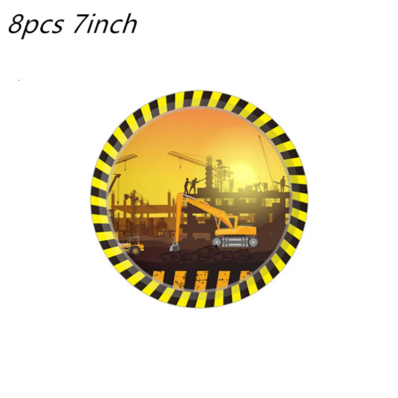 Строительство вечерние посуда тарелки автомобиль экскаватор с днем рождения баннер, флаг с надписью торт Топпер Baby Shower Декор воздушные шары