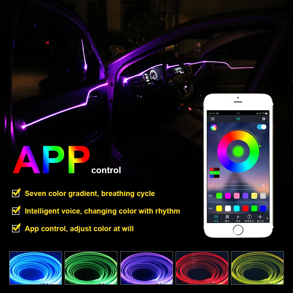 RGB автомобильные оптоволоконные атмосферные лампы Appдистанционное управление автомобильный внутренний свет окружающая лампа Светодиодная лента декоративное неоновое освещение EL Wire