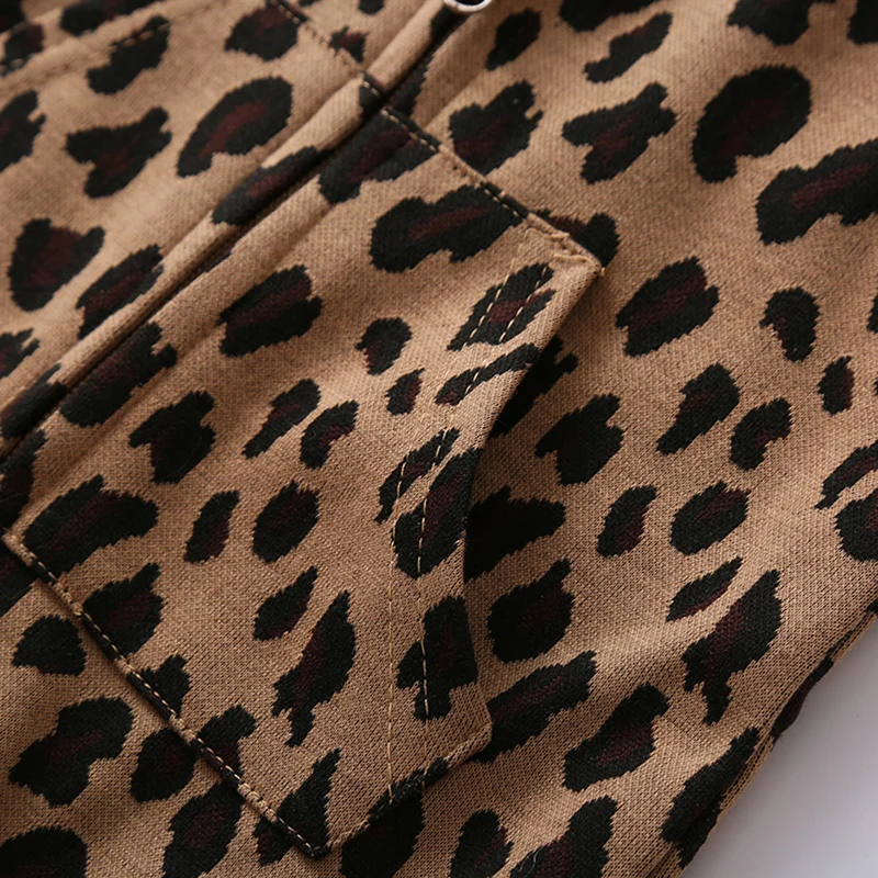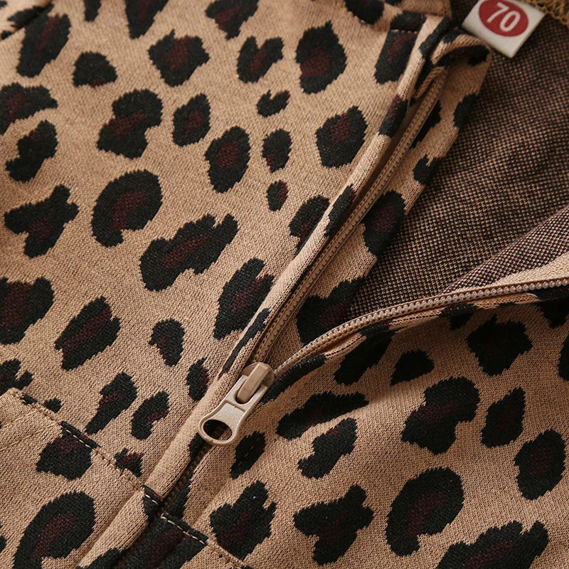 Комбинезон с капюшоном и леопардовым принтом для маленьких девочек и мальчиков от 0 до 24 месяцев, комбинезон с длинными рукавами и передними карманами для малышей, Свободный комбинезон для малышей