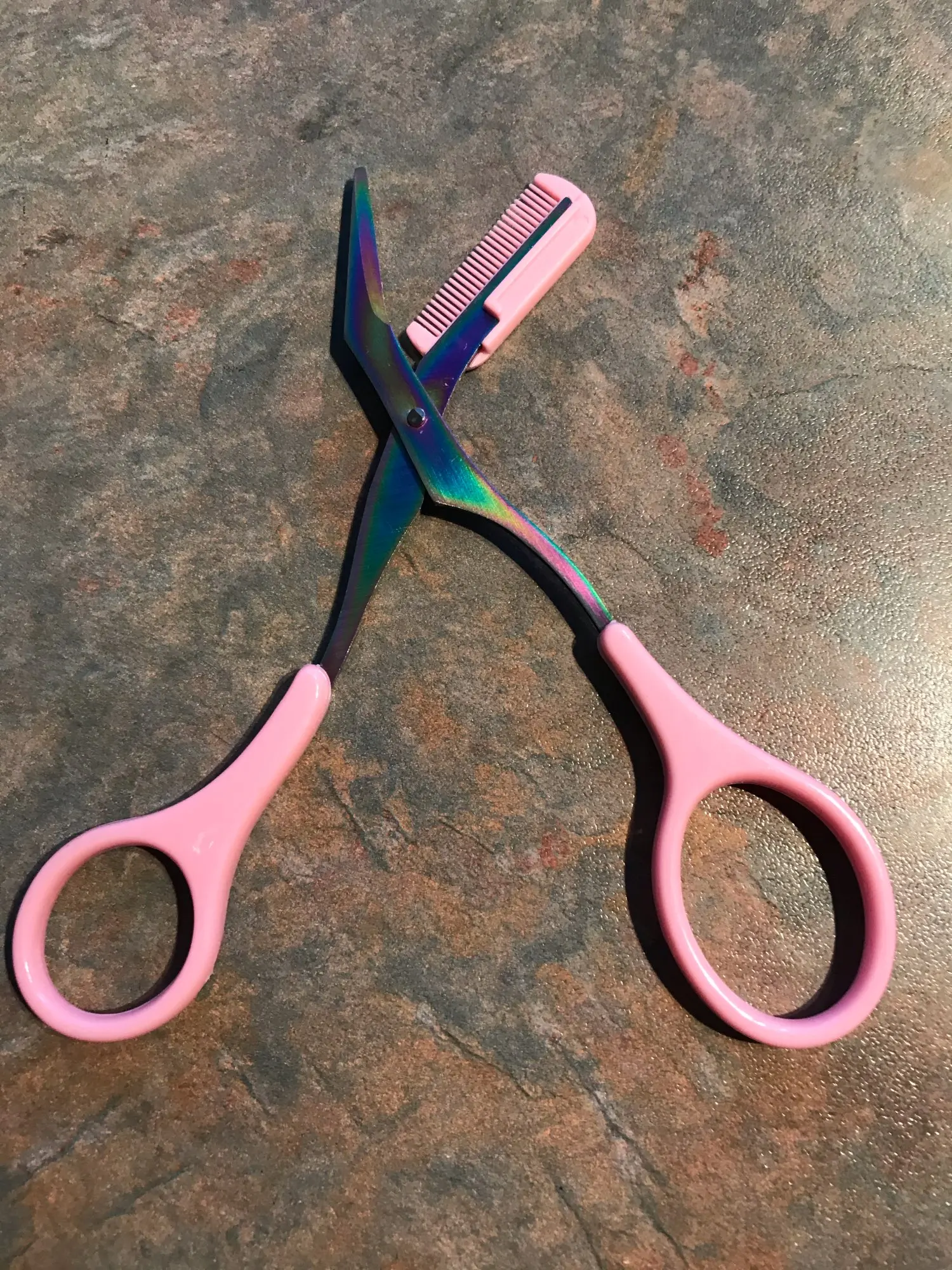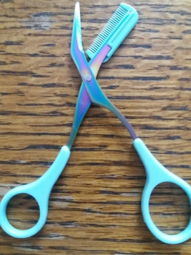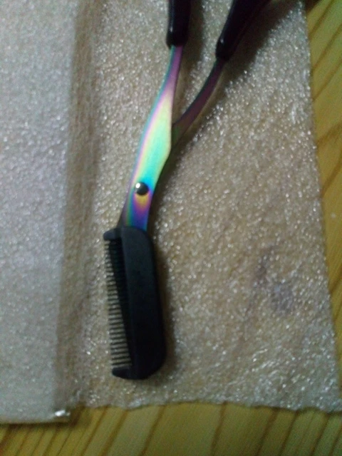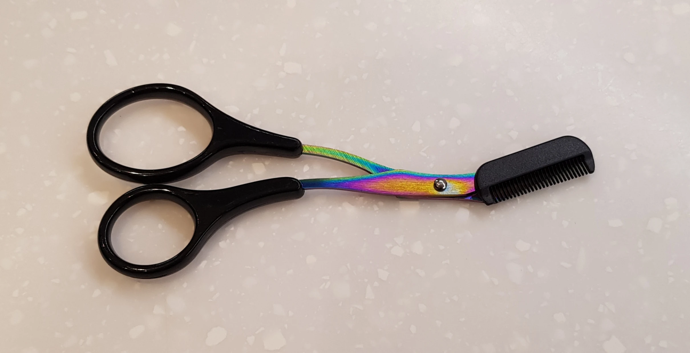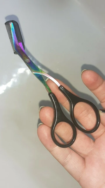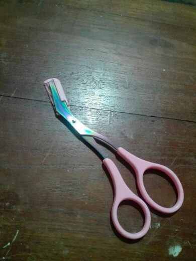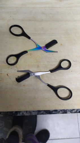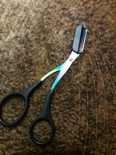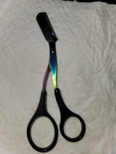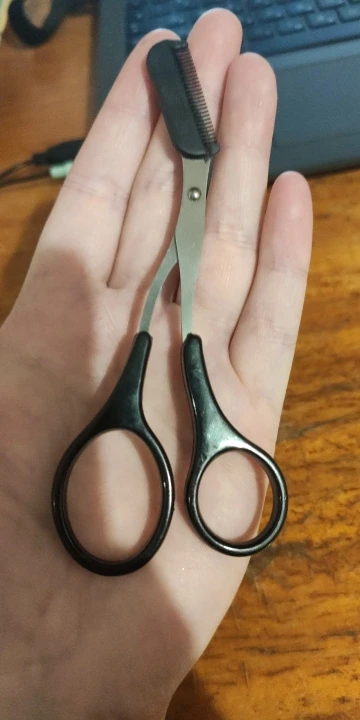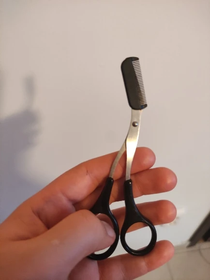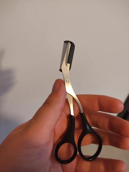 Для тех у кого, как и у меня длинные богатые брови. Сначала сложно приспособиться, но стоит набить руку и результат не заставит себя ждать. Брови выглядят намного более ухоженными. По сравнению с обычными ножницами, лезвие толстое. Расчесочку можно снять.