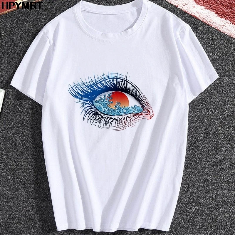 Женские футболки, Веселая футболка с волнами в глаза, Harajuku, топ с круглым вырезом, женская летняя повседневная одежда Kawaii, футболки с короткими рукавами
