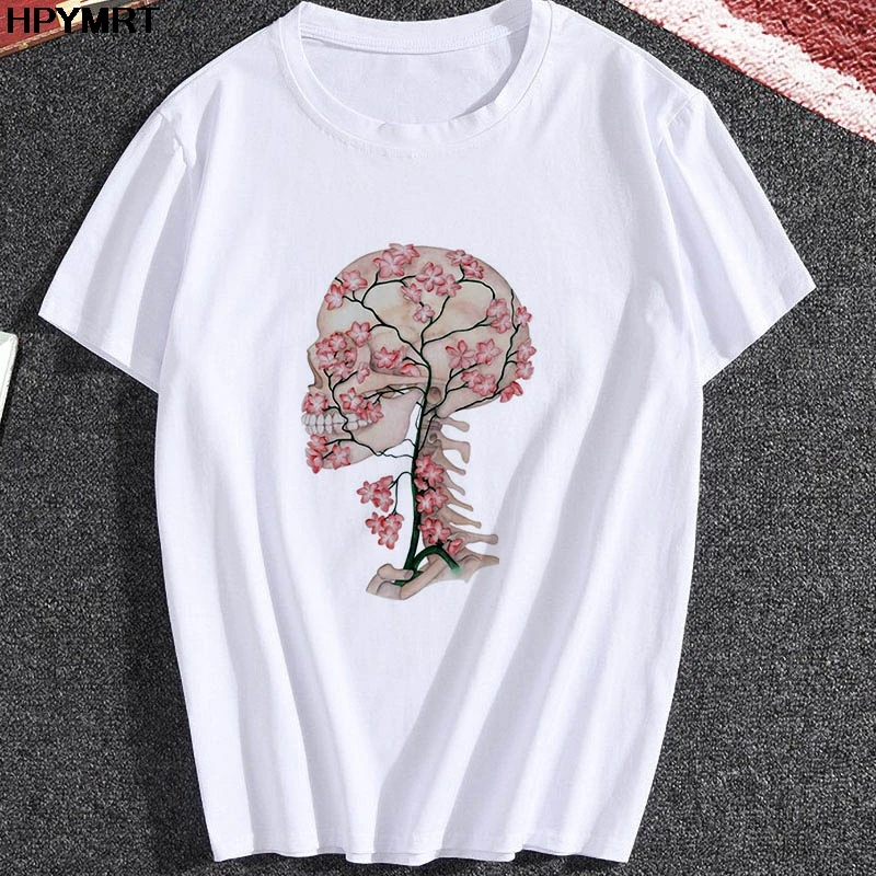 Модный Топ Женская футболка с принтом скелета Harajuku футболка жен...