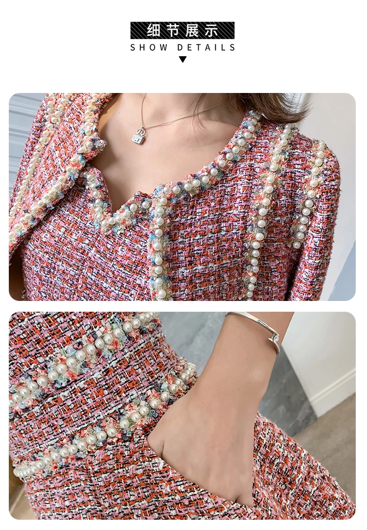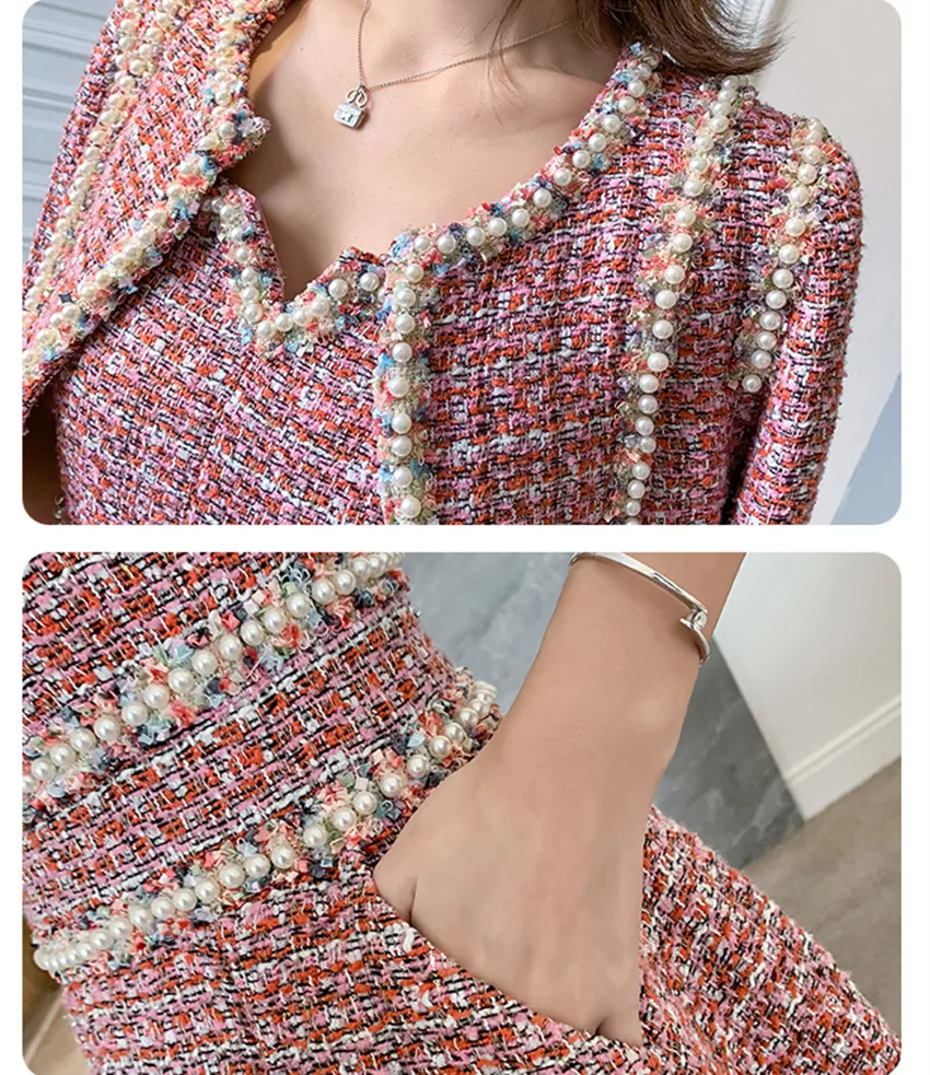 Женский твидовый костюм UCXQ с жемчужинами, Яркий шелковый короткий...