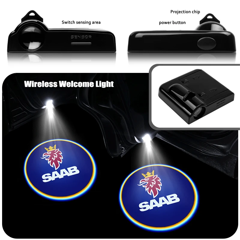 Беспроводной лазерный проектор для автомобильного стайлинга, 2 шт., светодиодный дверной светильник, привидение, светильник для Saab 9-3 9-5 900 9000 93 95, аксессуары
