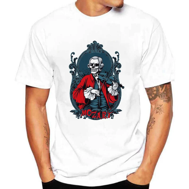 Мужские и женские футболки забавная Футболка с принтом скелета и скрипки Мужская футболка с коротким рукавом и круглым вырезом летняя одежда