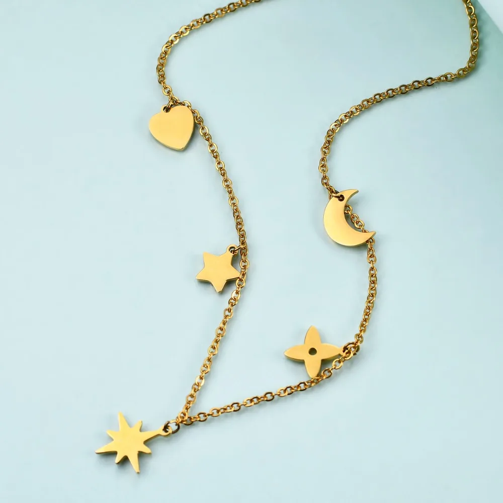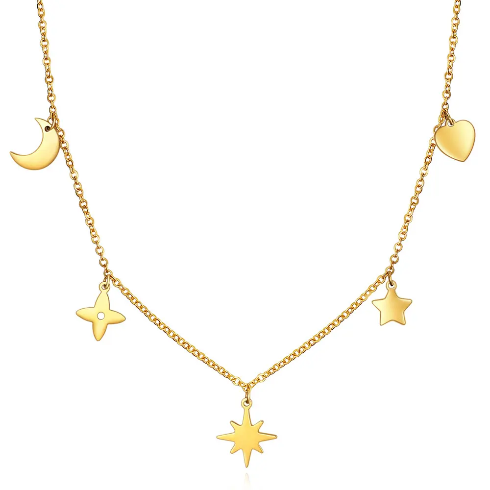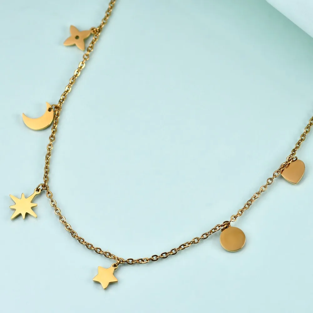 Золотой цвет минималистичный Шарм ожерелья с подвеской в виде диска колье ожерелье для женщин ювелирные изделия Луна Звезда Сердце солнце Богемия Подарок ожерелья