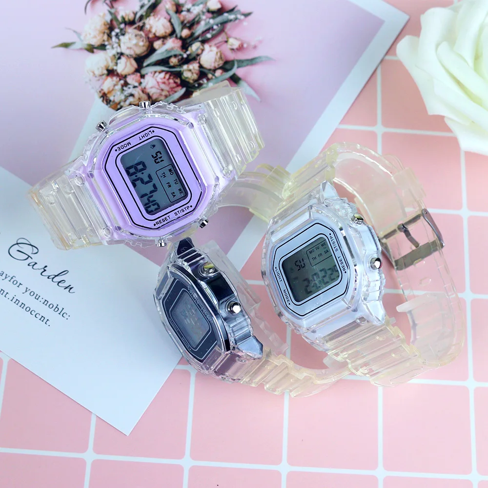 Новинка, прозрачные яркие цветные цифровые квадратные часы, женские...