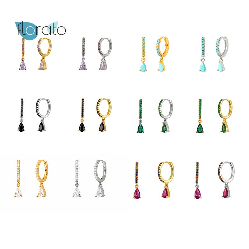 Серьги-кольца женские из серебра 925 пробы с фианитами