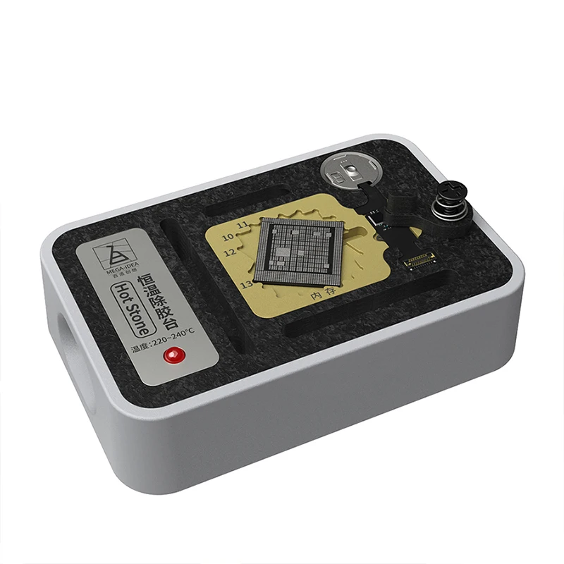 3 в 1 преднагревательная станция поддерживает чип процессора iphone A11 A12 Для iPhone X / XS MAX / 11 Pro Max motheboard и удаления клея. Точное позиционирование, точная температура, быстрое повышение температуры. Не скользит увеличение веса, цифровой дисплей температуры. Умный 15 минут сна, 183 ° три минуты экстремальной скорости. Быстрое расслоение, безопасная разборка, отсутствие повреждений материнской платы.