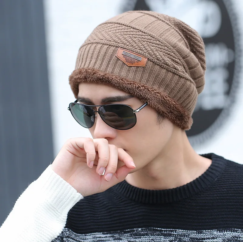 Зимняя Шапка-бини из кораллового флиса, мужская шапка-шарф, теплая дышащая шерстяная вязаная шапка для мальчиков, двухслойная шапка с надписью