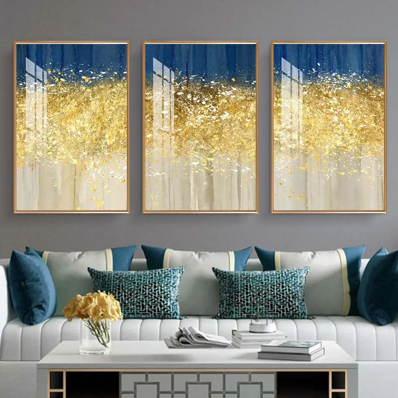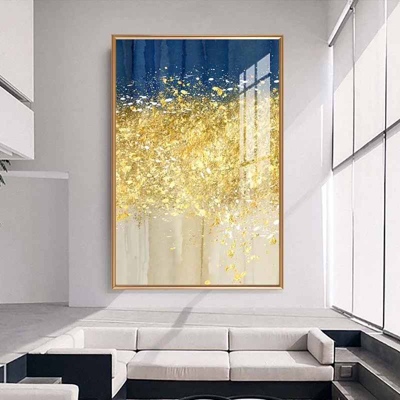Абстрактный золотой фольги Холст Картина синий стиль постер и печать современный минималистский настенные художественные картины для гостиной домашний декор