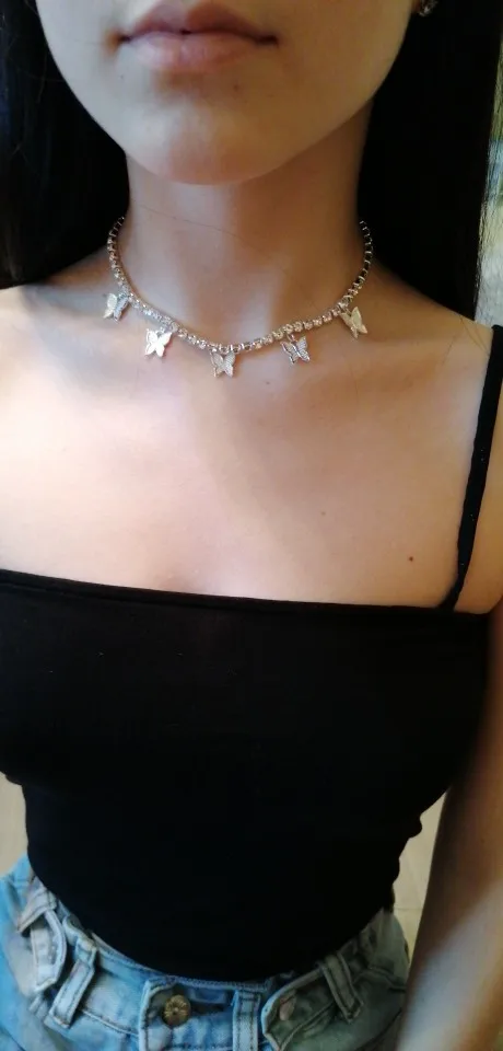 Ожерелье-чокер унисекс, с бабочкой, украшение для Стразы