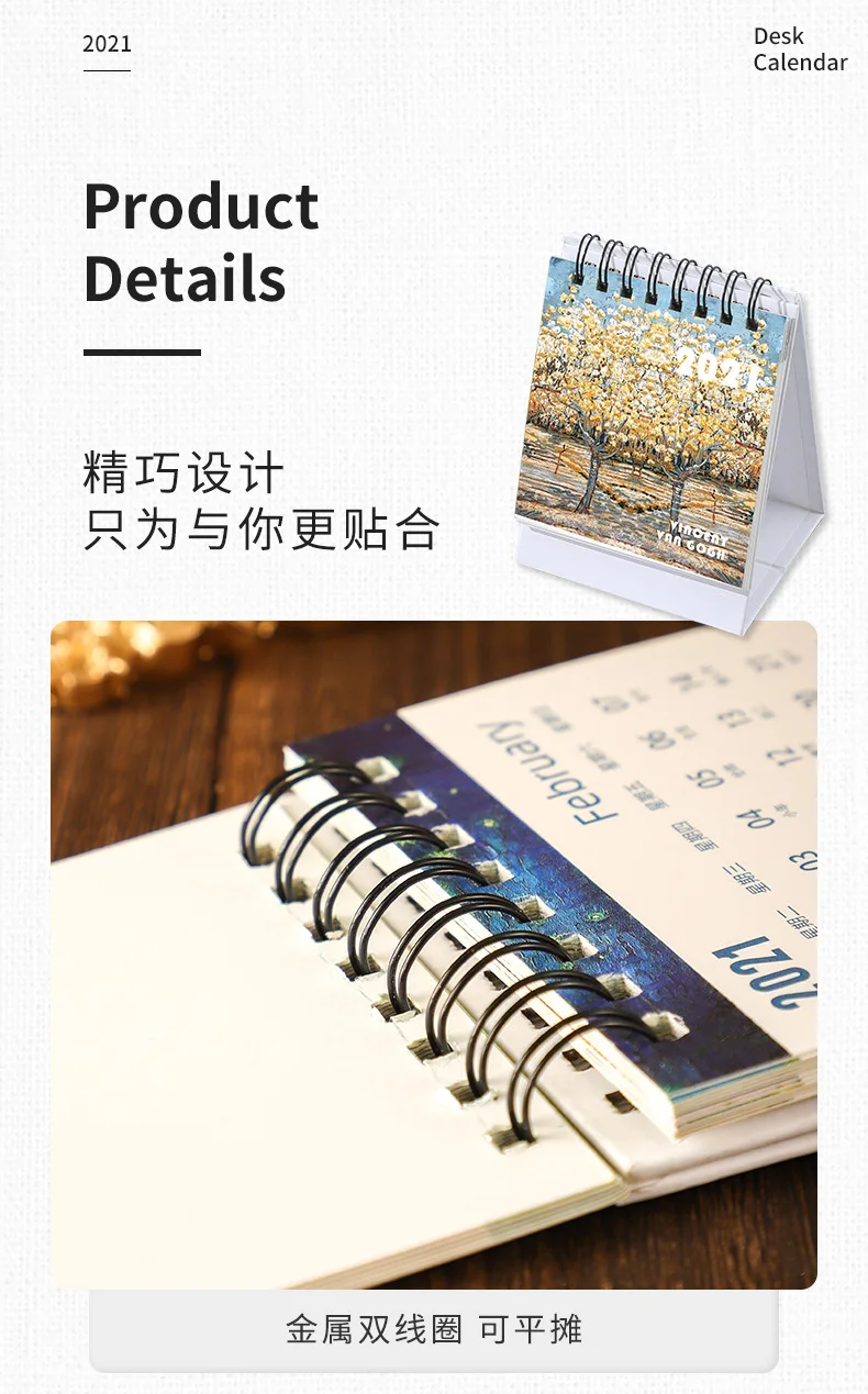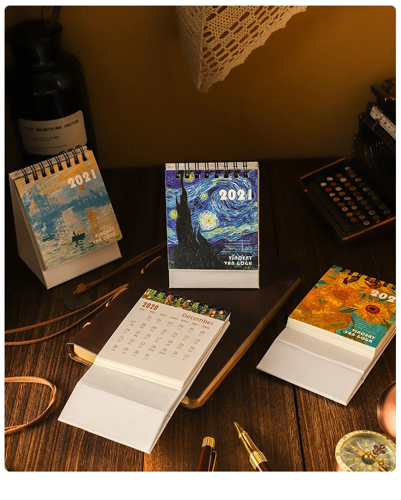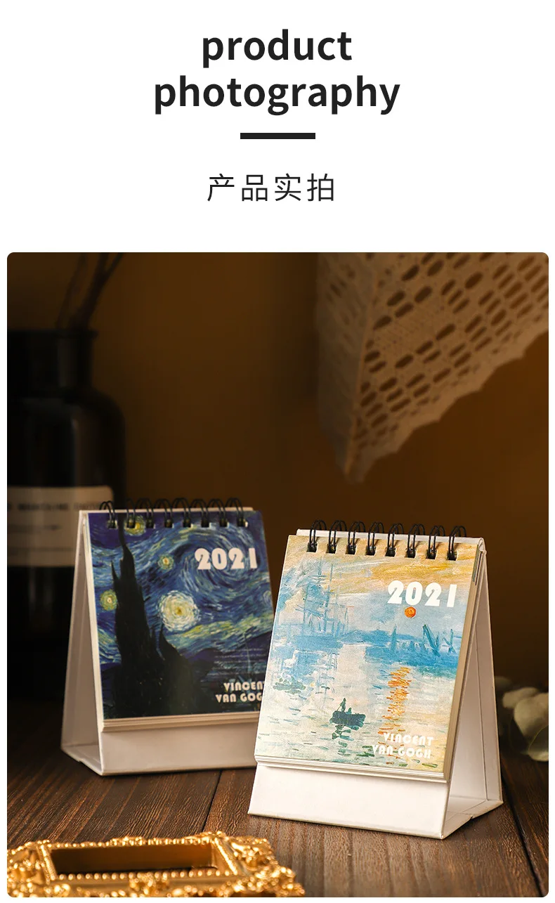 2021 картина маслом серия мини настольный календарь Ретро офисные аксессуары для дома креативные катушки настольные украшения Примечания