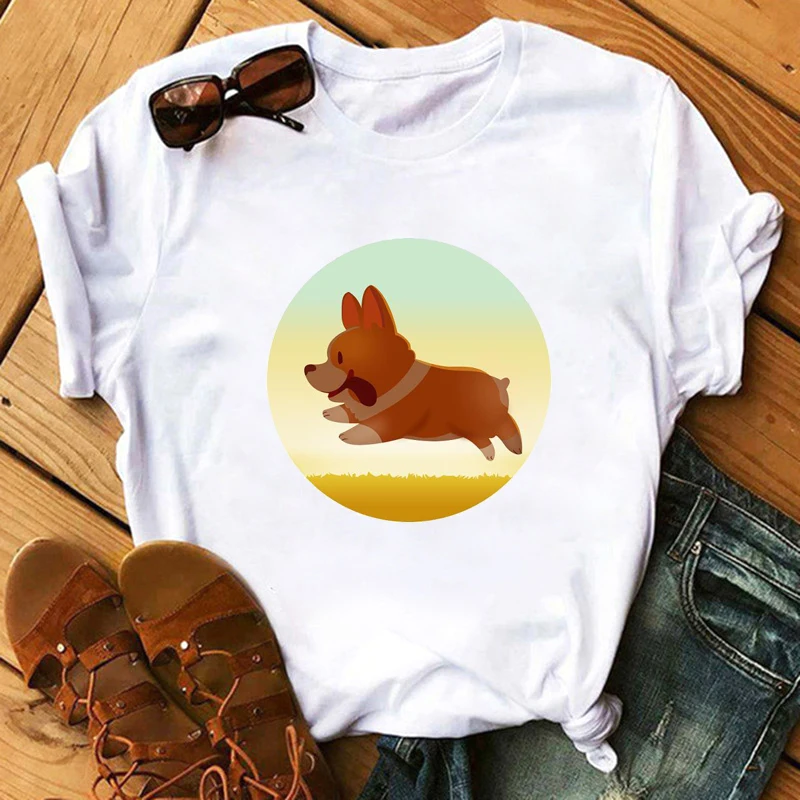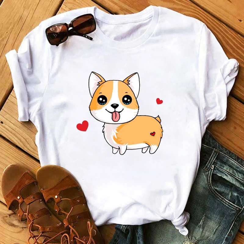 Футболка женская с принтом корги, милая рубашка в стиле 90-х, с графическим принтом в стиле Харадзюку, Ulzzang