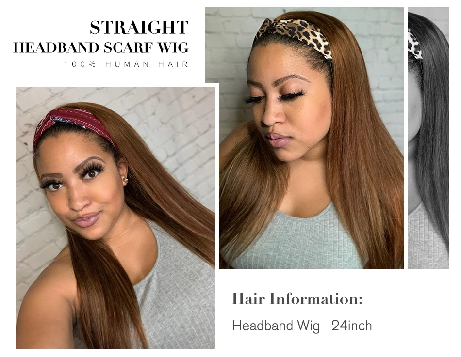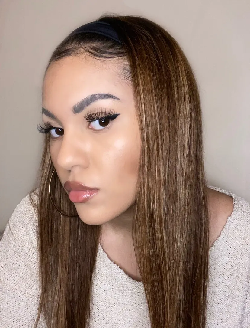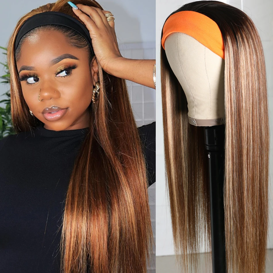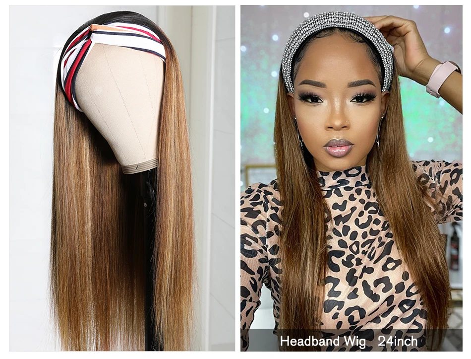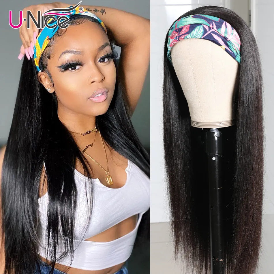 Парик из волосы Unice прямых волос, парик с головной повязкой натуральные светлые каштановые прямые волосы для женщин