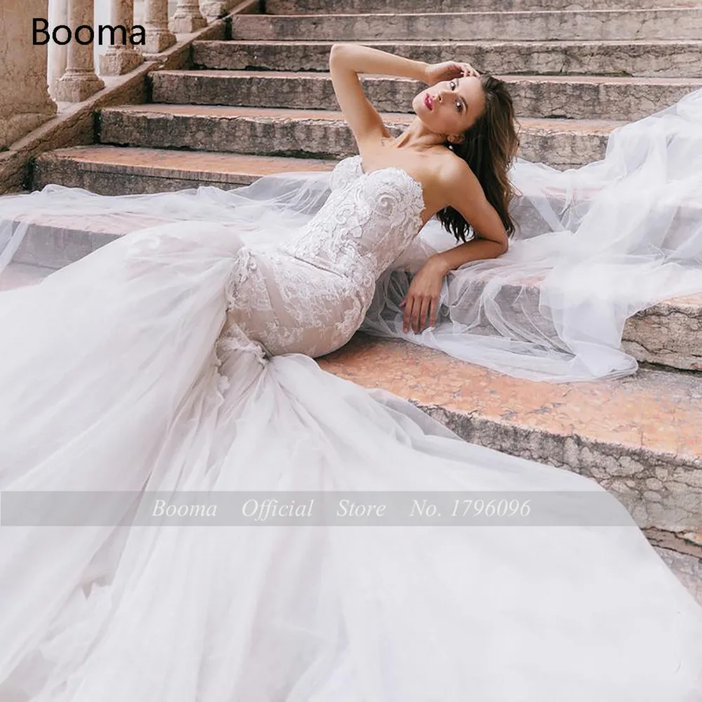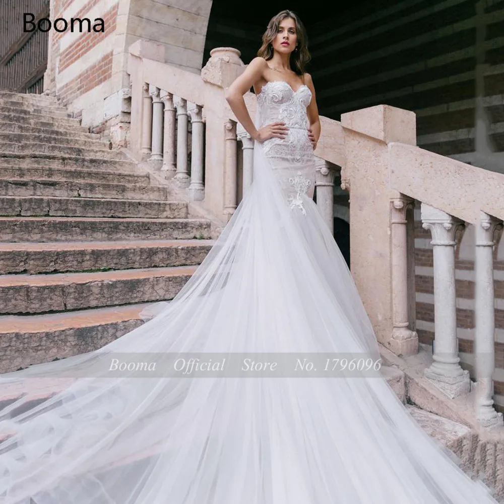 Booma, элегантные свадебные платья Русалочки, Милое Свадебное платье с открытой спиной, кружевные платья с аппликацией из тюля, Длинные платья невесты
