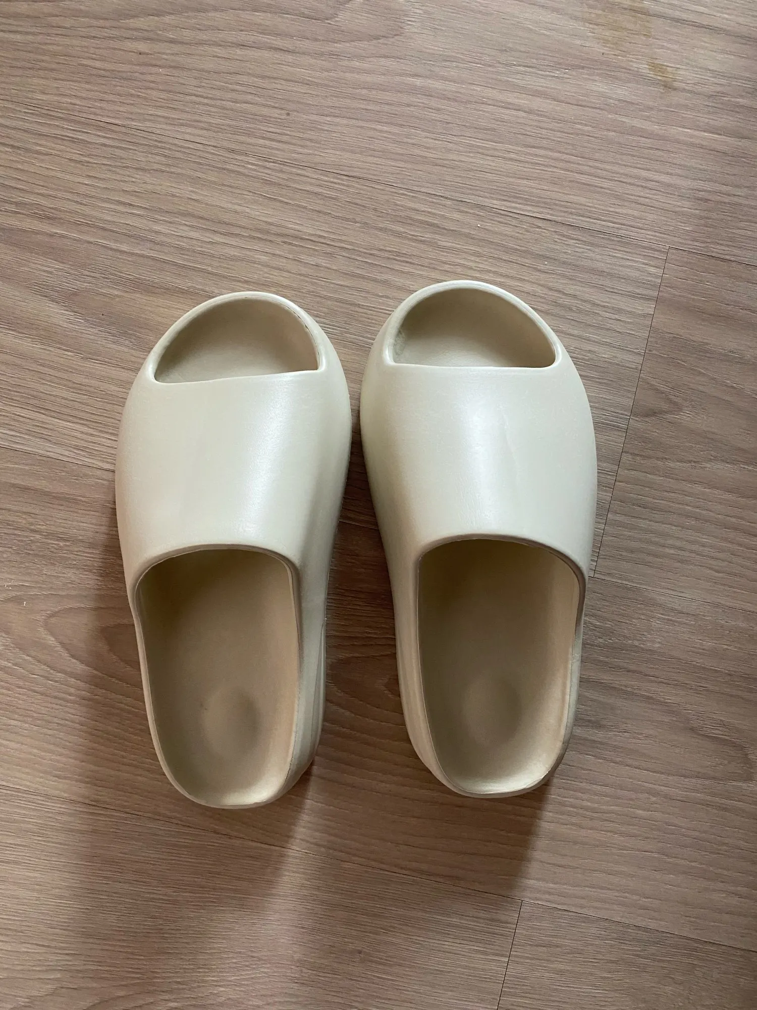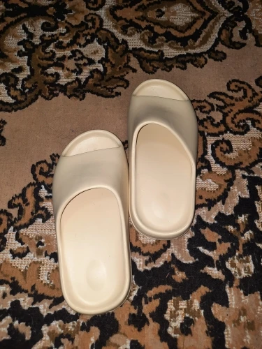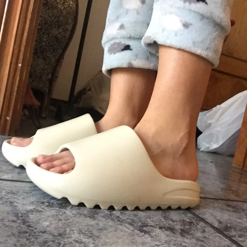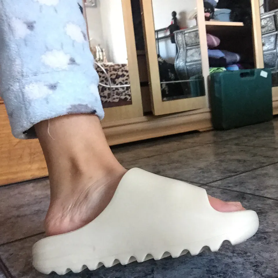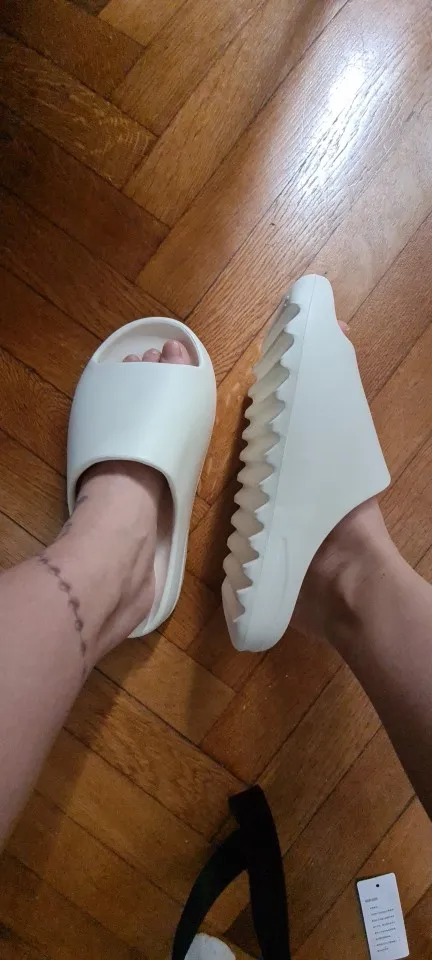 Это точно так же, как у yeezys, за исключением логотипа Адидас. Они действительно удобны, как ходьба на подушках. Бежевый цвет идеален, как кремовый мягкий цвет. Размеры отличаются от размеров ЕС, поэтому сверьтесь с таблицей.