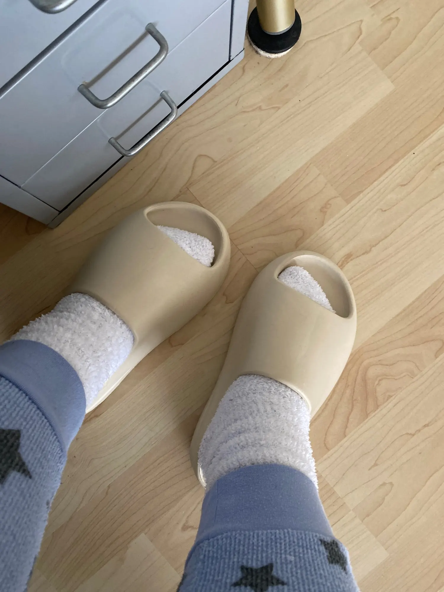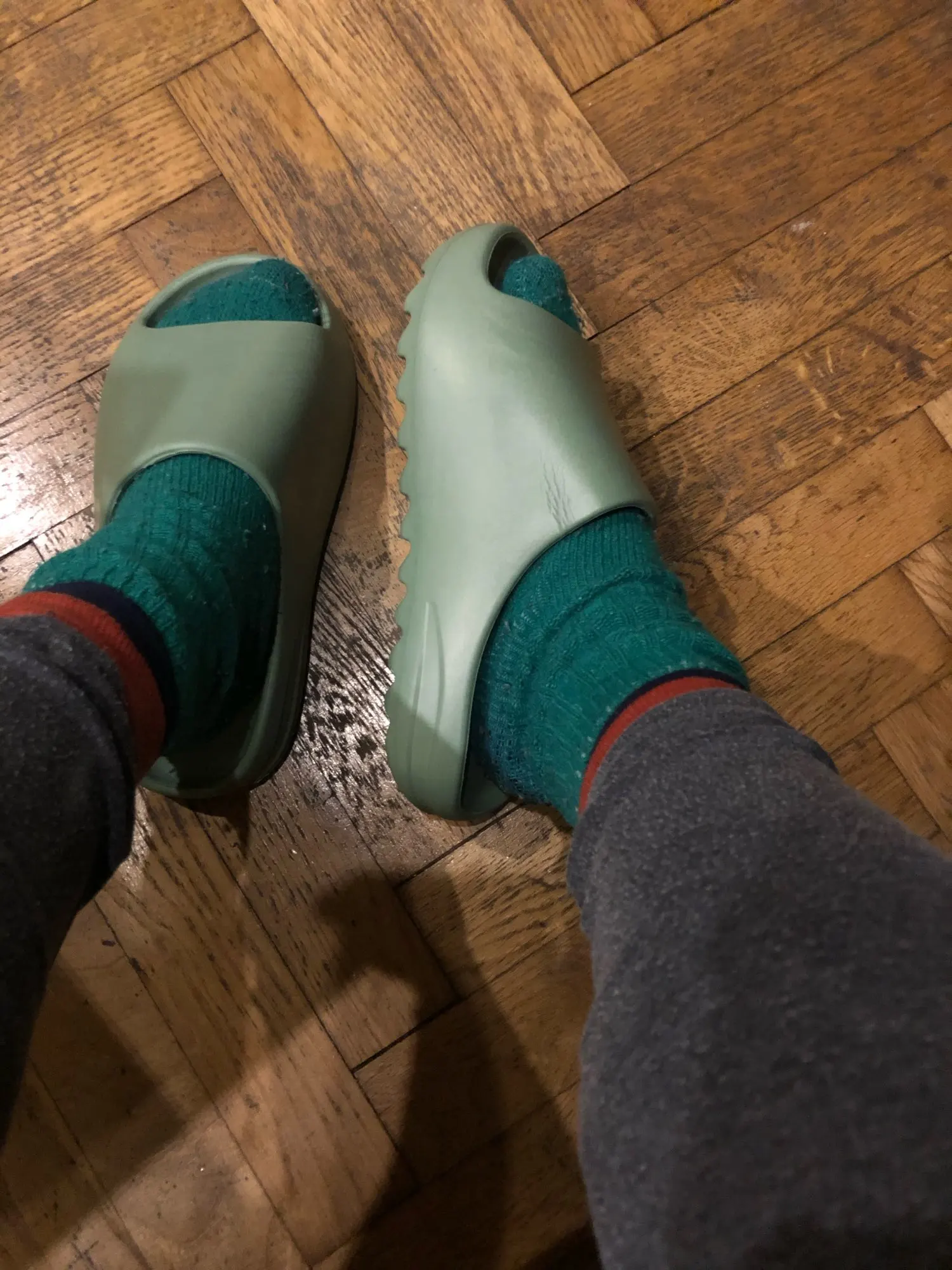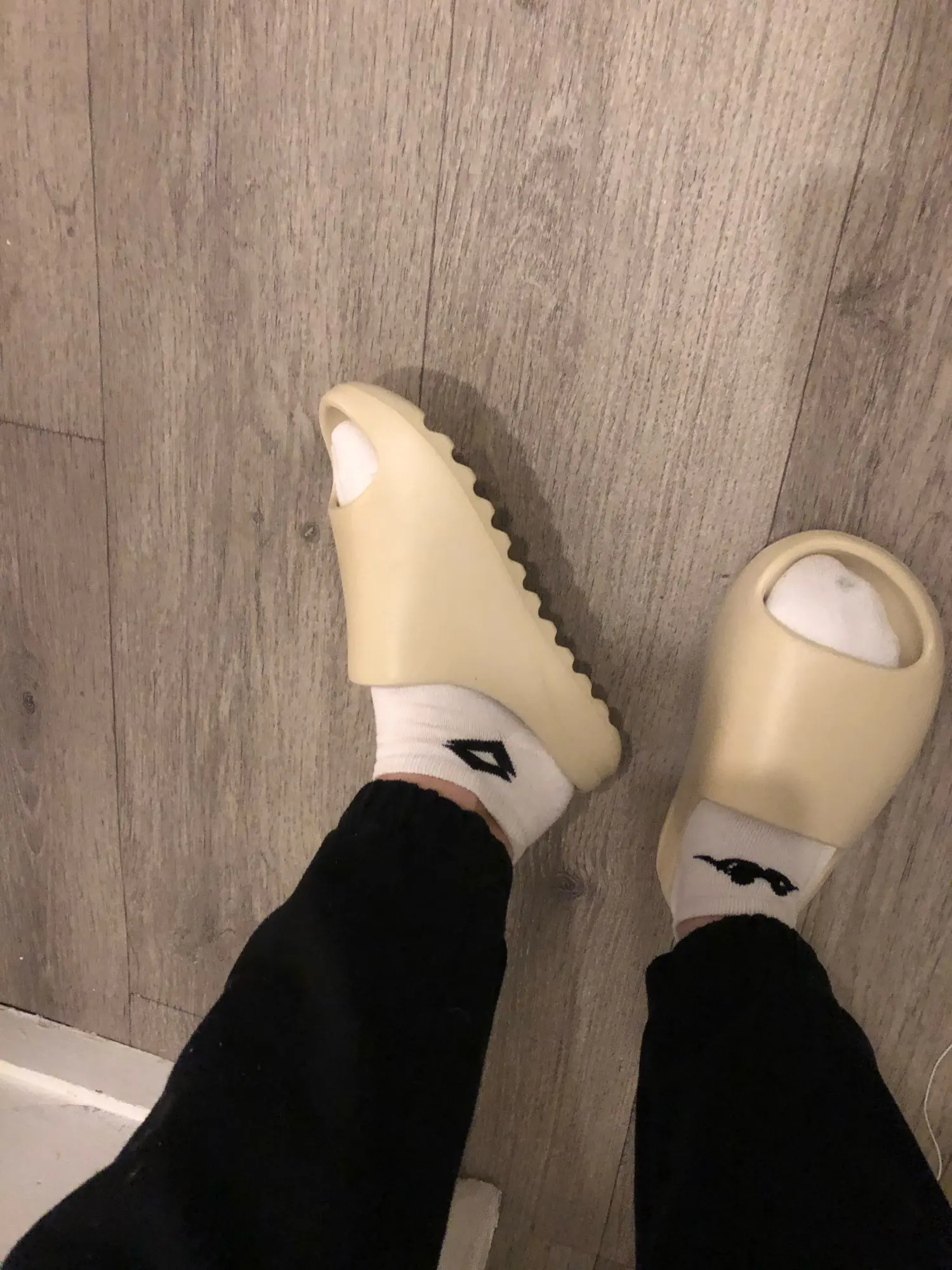 Это точно так же, как у yeezys, за исключением логотипа Адидас. Они действительно удобны, как ходьба на подушках. Бежевый цвет идеален, как кремовый мягкий цвет. Размеры отличаются от размеров ЕС, поэтому сверьтесь с таблицей.