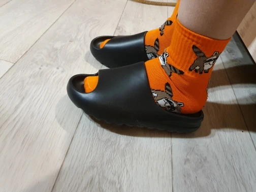 классные тапки! выглядят точно как на картинке. смотрятся немного громоздко, но очень необычно )) удобные, но при долгой носке начали натирать на внутренней стороне стопы. надеюсь разносятся