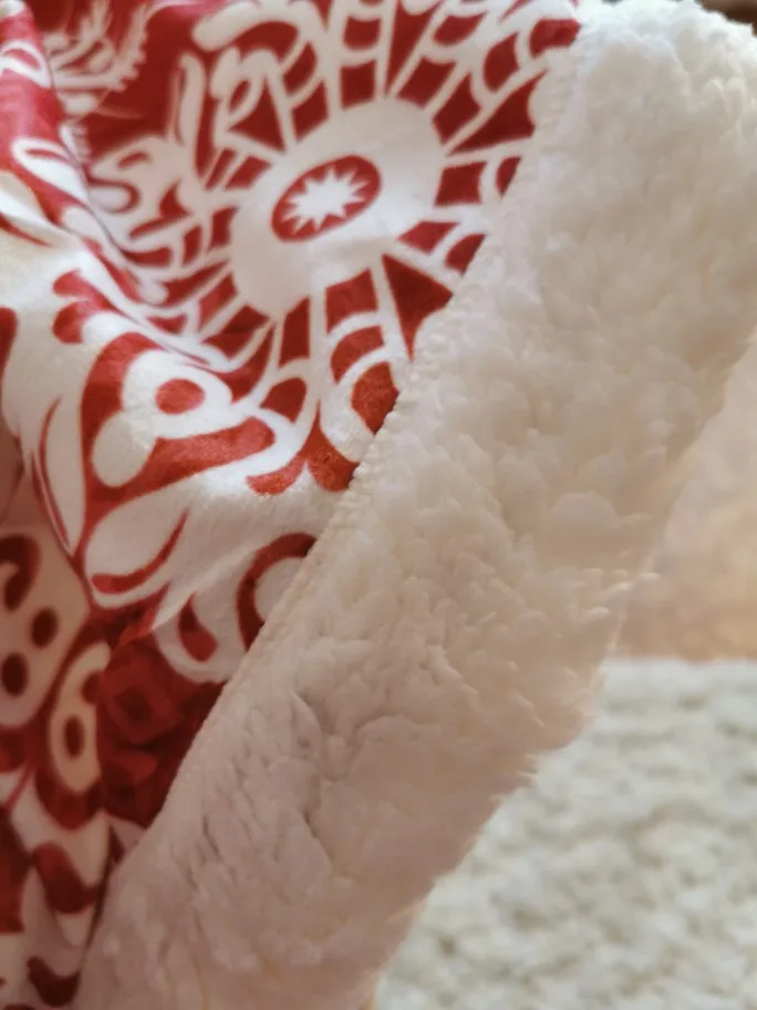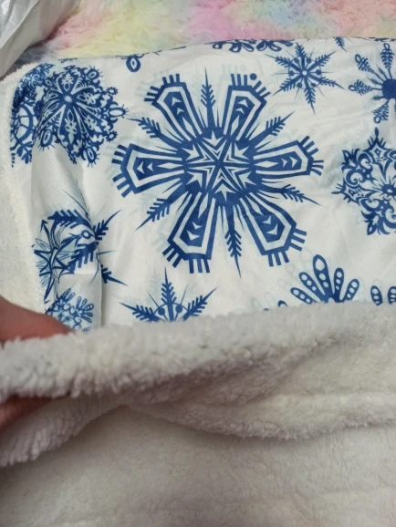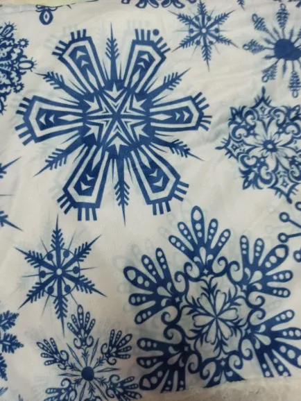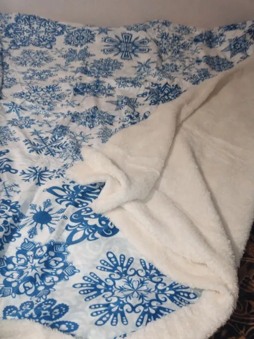 Он намного тоньше, чем я ожидала, будучи одеялом с зимними мотивами, я наделась, что он раскроется больше. Принт точно соответствует фотографии.