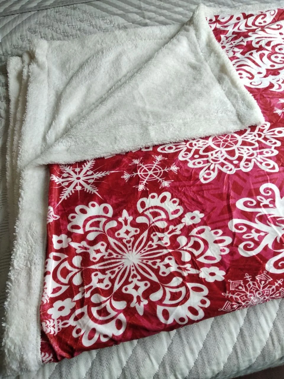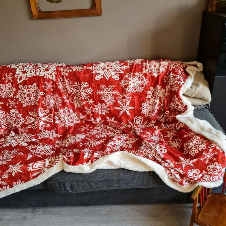 Одеяло-Снежинка на меху, флисовое, мягкое, теплое, зимнее, красное, рождественский подарок, плюшевое покрывало для кровати, дивана, автомобильного покрывала
