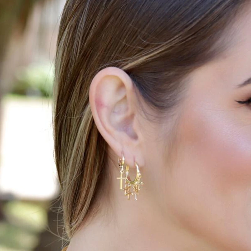 Серьги-кольца Huggie женские из серебра 925 пробы с чернымбелым цирконом
