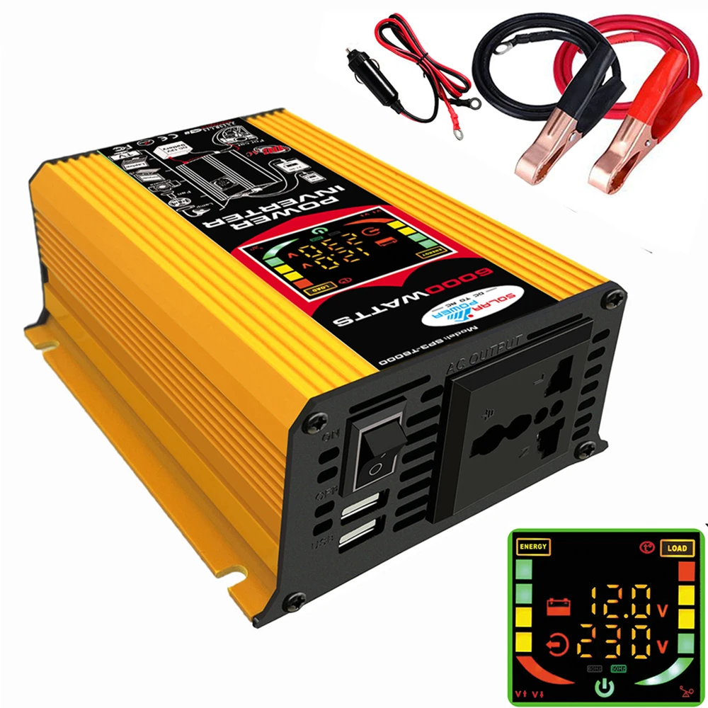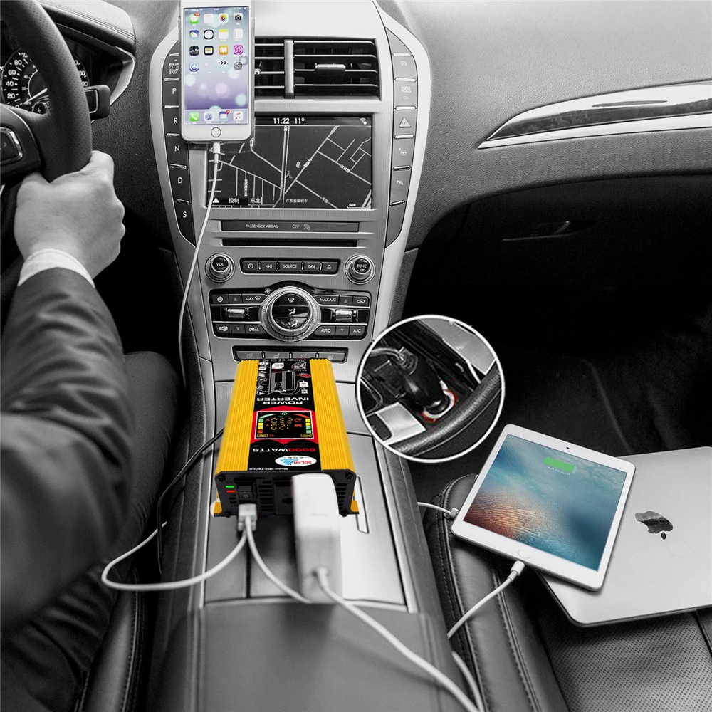Цифровой автомобильный инвертор Peak, 6000 Вт, 12 В постоянного тока в 220110 В переменного тока, двойной модифицированный USB синусоидальный преобразователь, автомобильный инвертор мощности, адаптер зарядного устройства