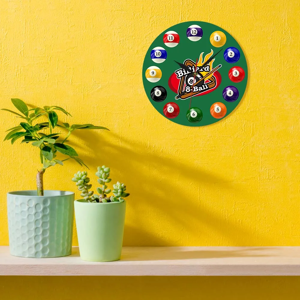 Вы ищете красивые настенные часы? Это может быть ваш шанс получить один. Настенные часы с бильярдным мячом-это качественный жикле-принт, который имеет яркие цвета, которые будут поддерживать их цвет в течение многих лет. Лицо напечатано на акриловой пластине. Края красиво отделаны. Вы оцените солидное качество и ощущение этих красивых часов. Это может быть даже идеальным украшением для вашей комнаты или полки, если вы хотите. Вы можете использовать его дома или в офисе, или где бы вы ни хотели его положить. Этот предмет делает уникальный акцент в качестве полезного, декоративного хронографа.