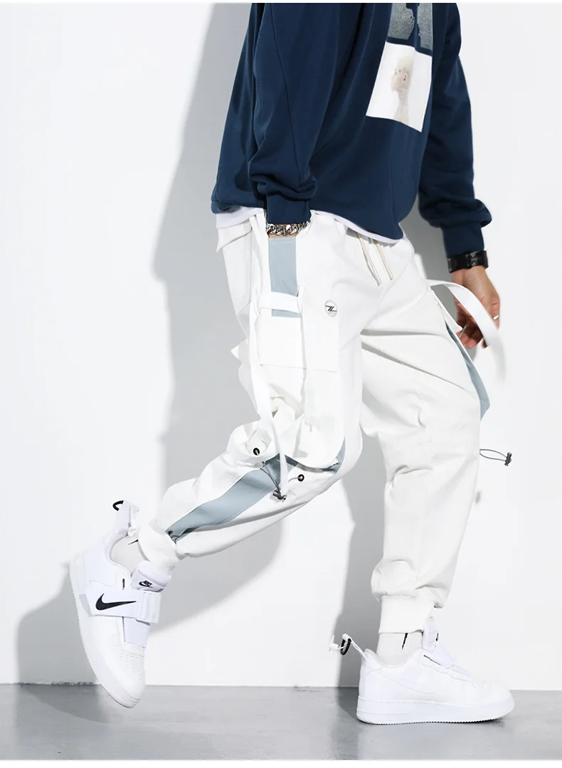Мужские спортивные штаны, в стиле хип-хоп, шаровары, с несколькими карманами, с лентой, спортивные штаны, уличная одежда, повседневные мужские штаны