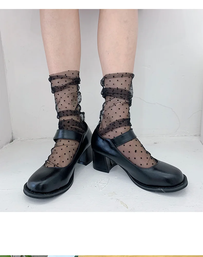 Носки женские сетчатые шелковые в Корейском стиле, модные тонкие прозрачные в горошек в японском стиле Харадзюку, летние