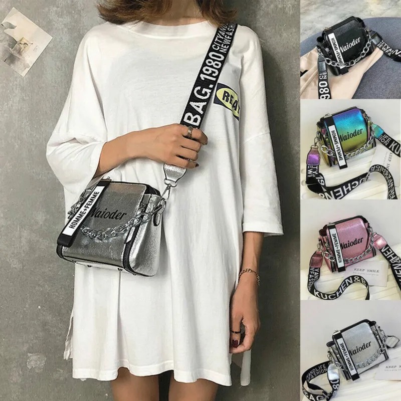 Сумка на плечо женская с лазерным эффектом, роскошный саквояж-тоут из искусственной кожи на цепочке, кошелек с надписью мессенджер через плечо, клатч, 2021
