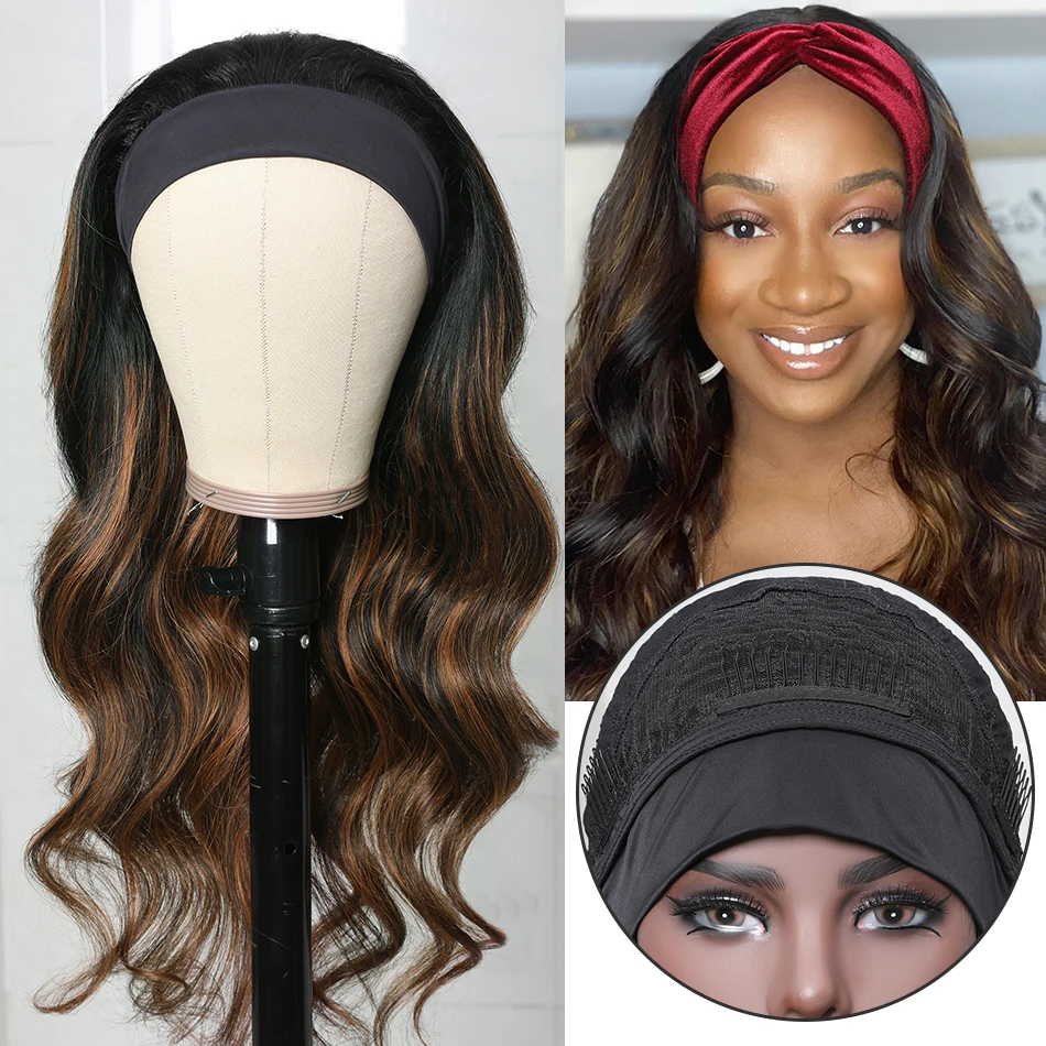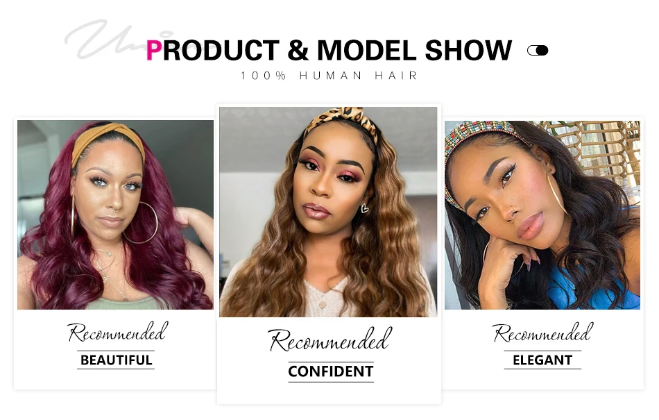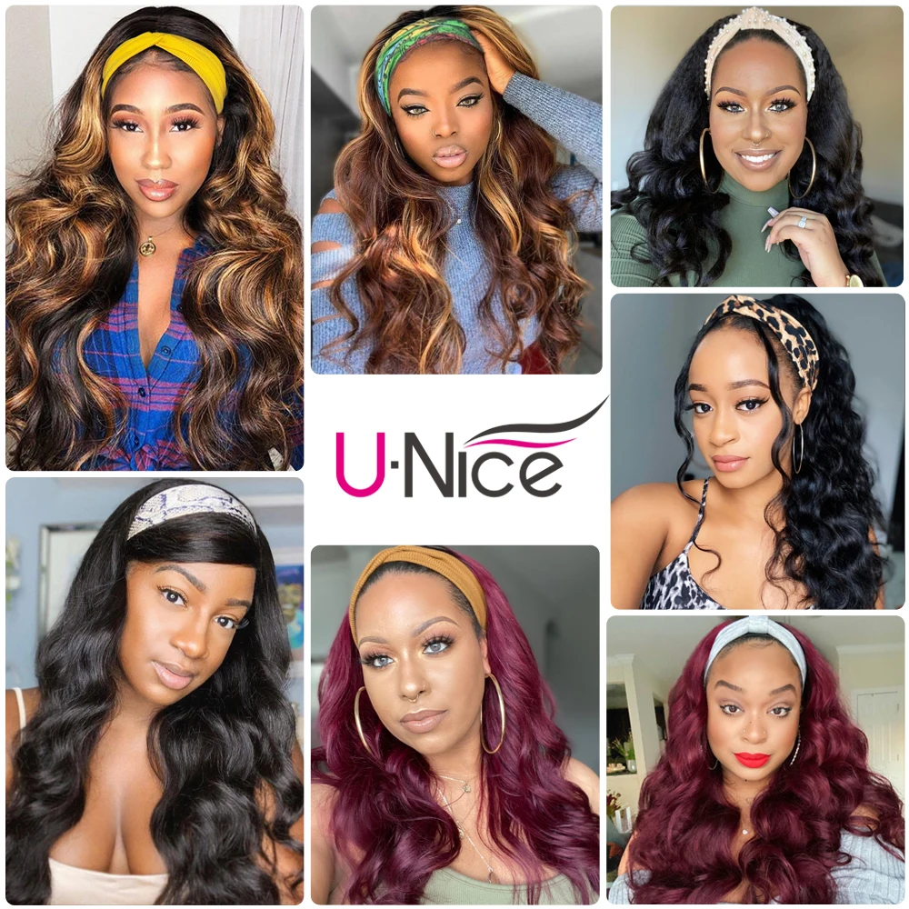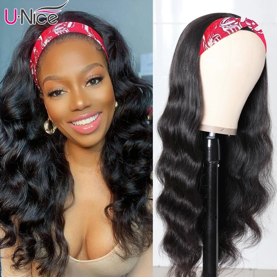Волосы Unice, дизайнерские парик с головной повязкой человеческие волосы, волнистые, подчеркивающие волосы, шикарный стиль, безклеевые человеческие волосы, с Предварительно прикрепленным шарфом