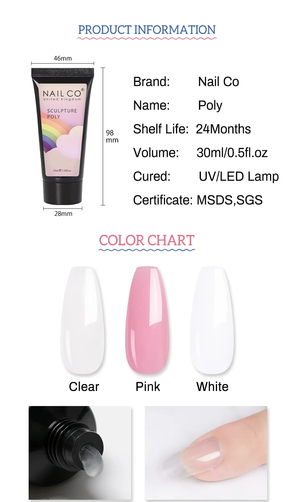 Белый и розовый прозрачный скульптурный гель NAILCO, УФ-гель для ногтей, поли-желе для наращивания, 30 мл, акриловые скульптурные материалы для ногтей, быстрое наращивание, удаление замачиванием