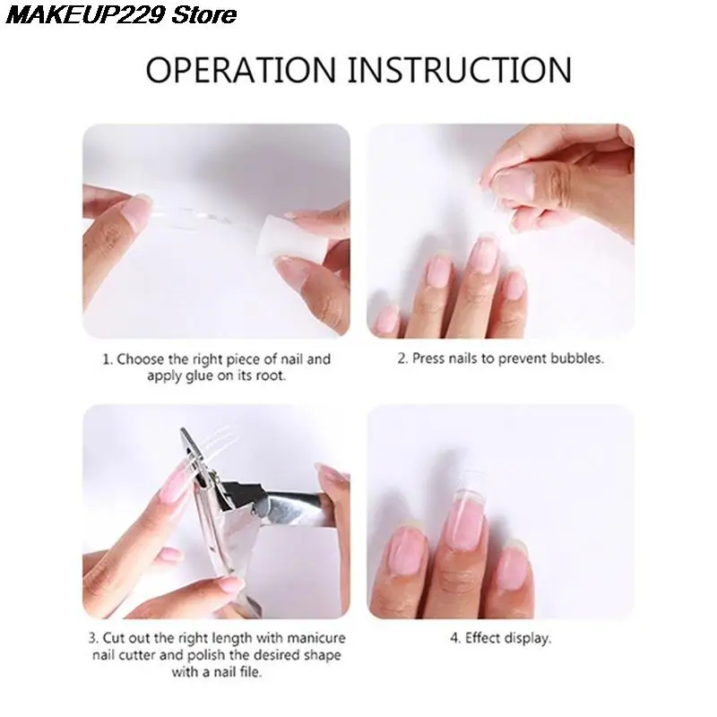 Как использовать:1. Слегка нанесите поверхность ногтя.2. Нанесите тонкое Базовое покрытие, закрепите его под УФ/светодиодной лампой.3. Выберите подходящий размер кончиков для ногтей.4. Нанесите/УФ-гель на форму для ногтей, используйте карандаш для ногтей, чтобы сделать гель гладким.5. Приклейте его к реальному ногтю, убедитесь, что он полностью разрастается, высушите его под УФ/светодиодной лампой.6. Удалите накладные ногти, обрежьте форму и полируйте ногти.7. Нанесите верхнее покрытие на УФ/светодиодную лампу.8. Дизайн ногтей.