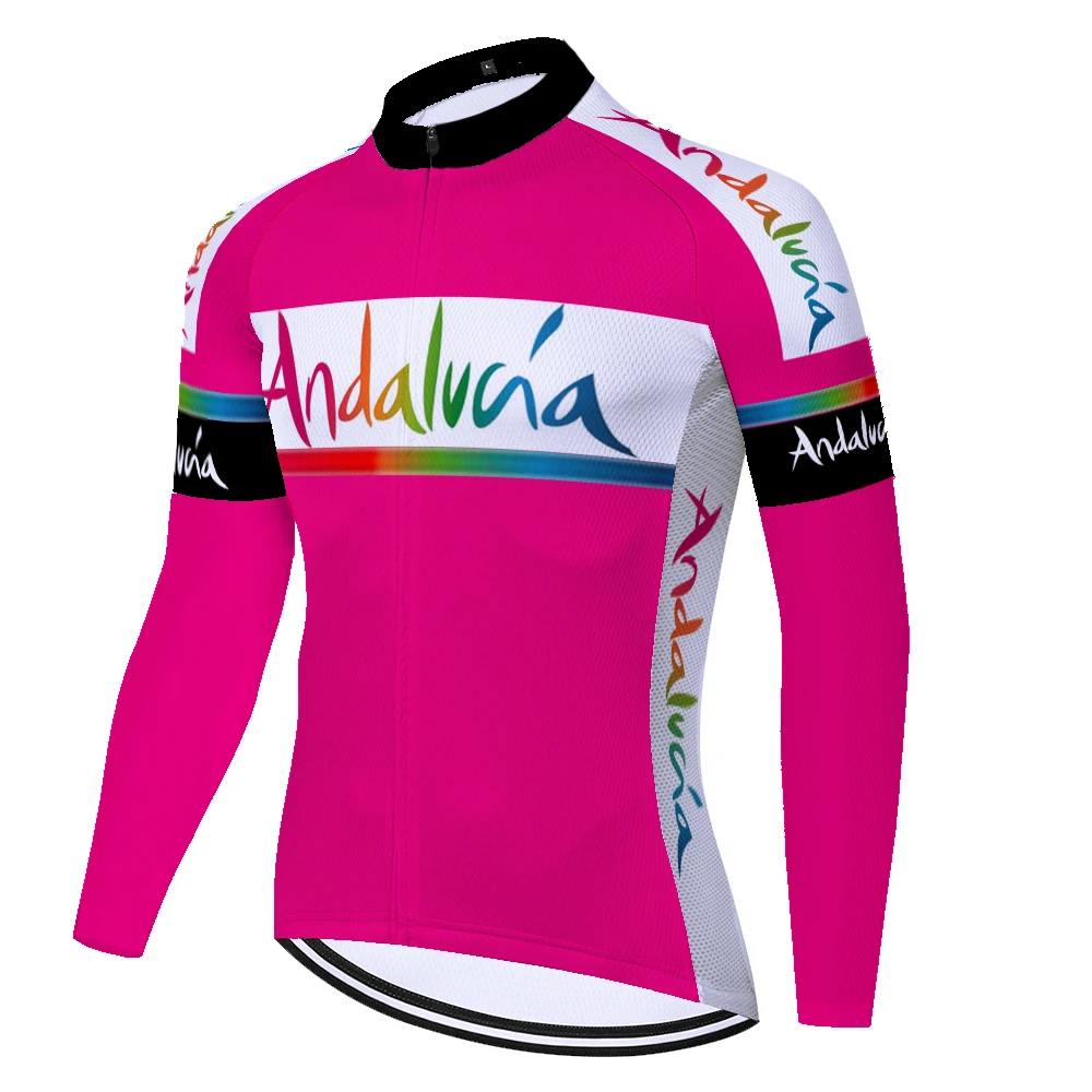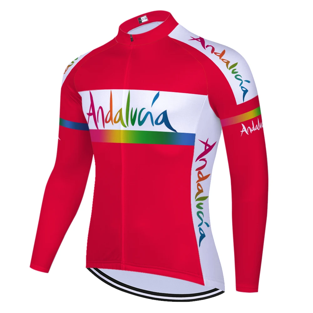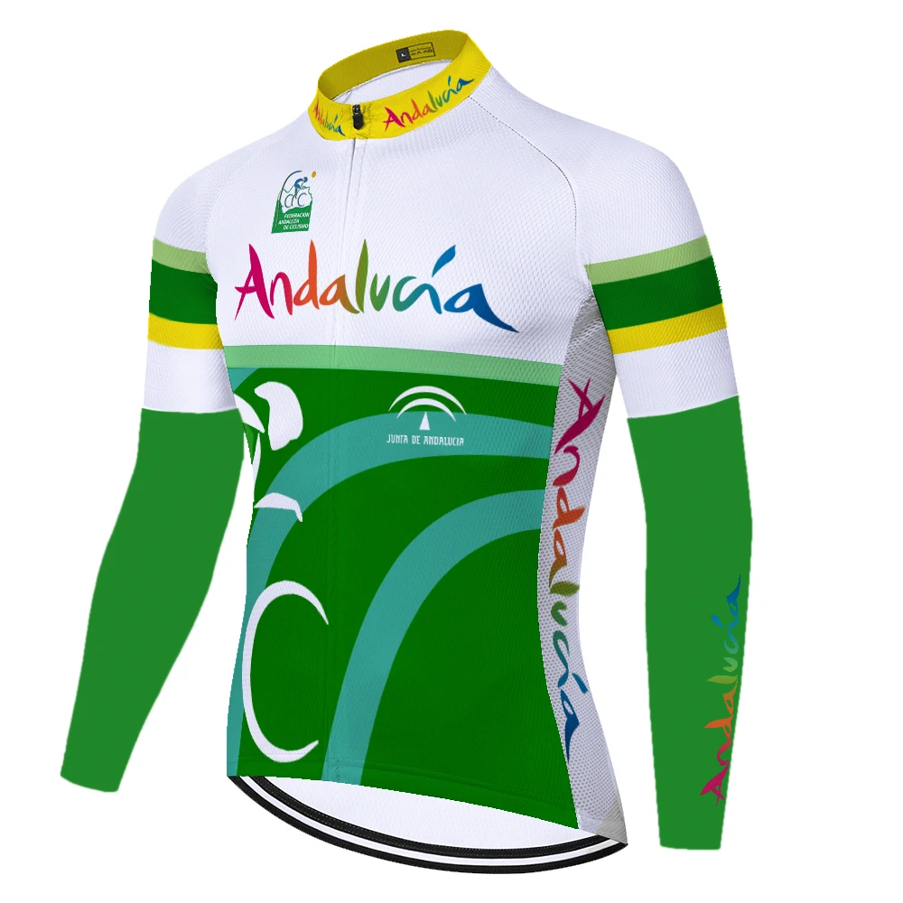 Футболка велосипедная Proteam для команды Андалусии, дышащая быстросохнущая рубашка с длинным рукавом для езды на велосипеде, лето-весна