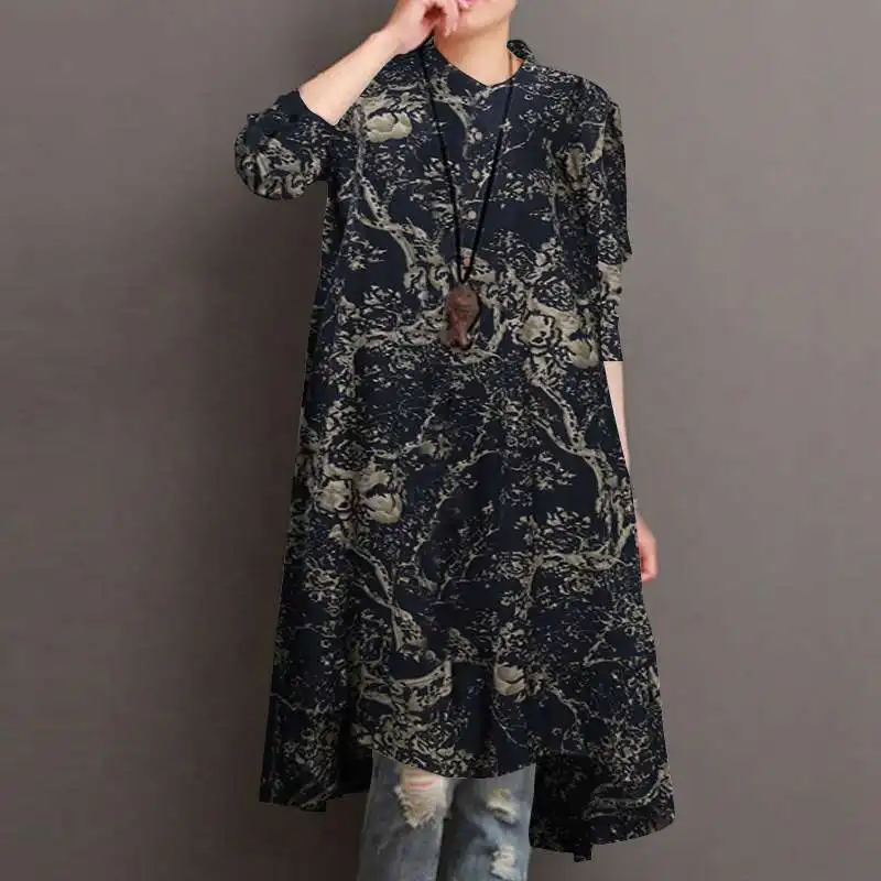 Посылка входит: 1 платьеМатериал: 100% хлопокЦвета: белый, темно-синийДлина рукава: полный рукавВырез горловины: круглый вырезРисунок: цветная печатьДлина: длина до коленаЦепочка с пряжкой: спереди на пуговицах, манжеты на пуговицахТолщина: тонкаяОсобенности: Высокий НизкийСтиль: Досуг, богемный, ретро, Европа, НациональныйСезон: Осень, ЗимаПовод: семья вечерние, пляж, свадьба, праздник, работа