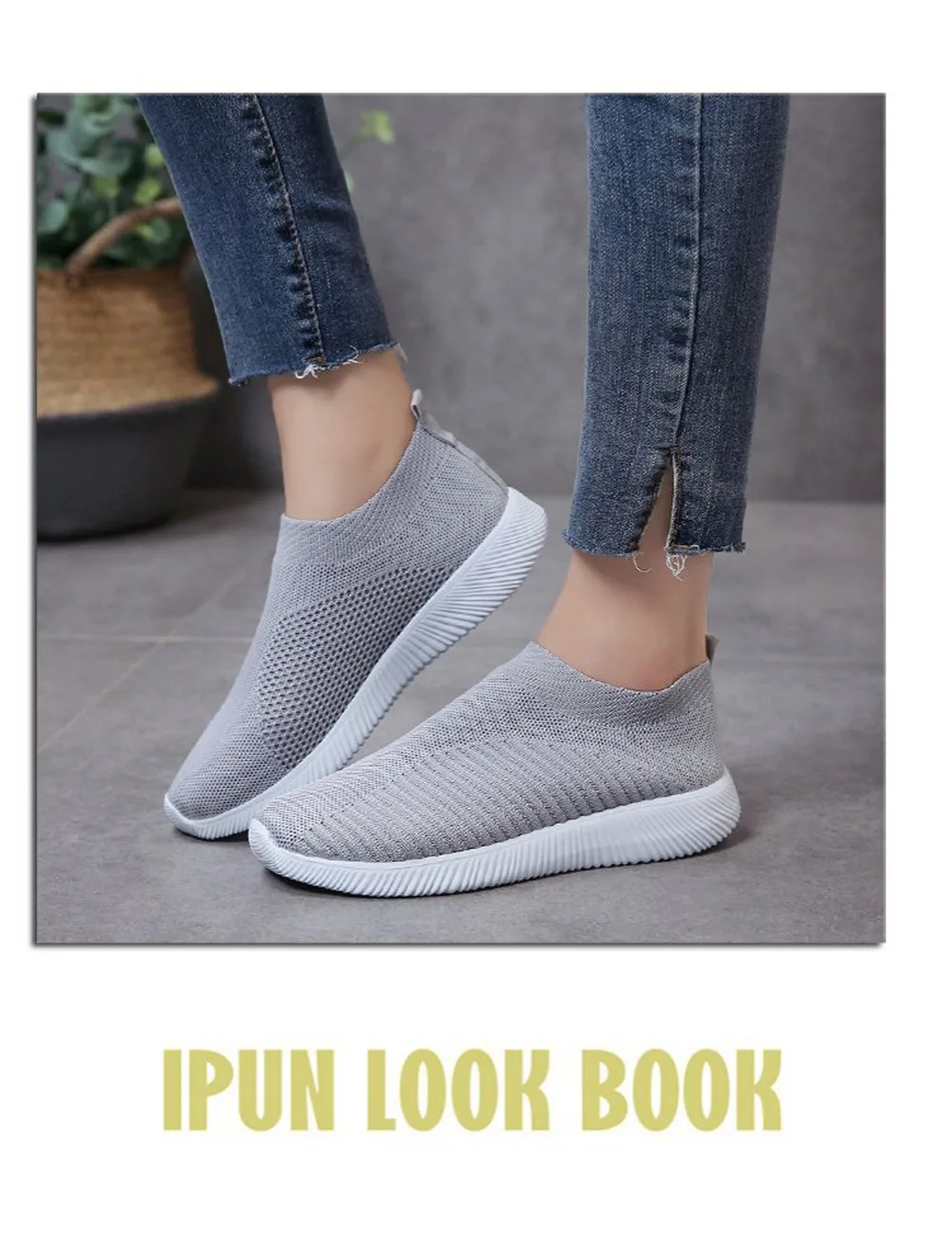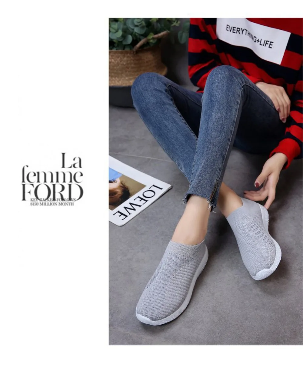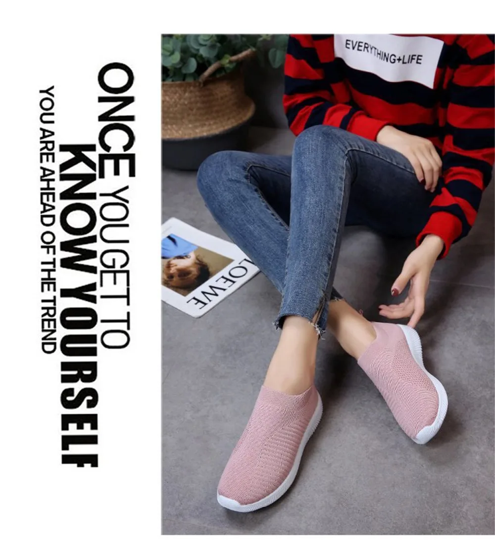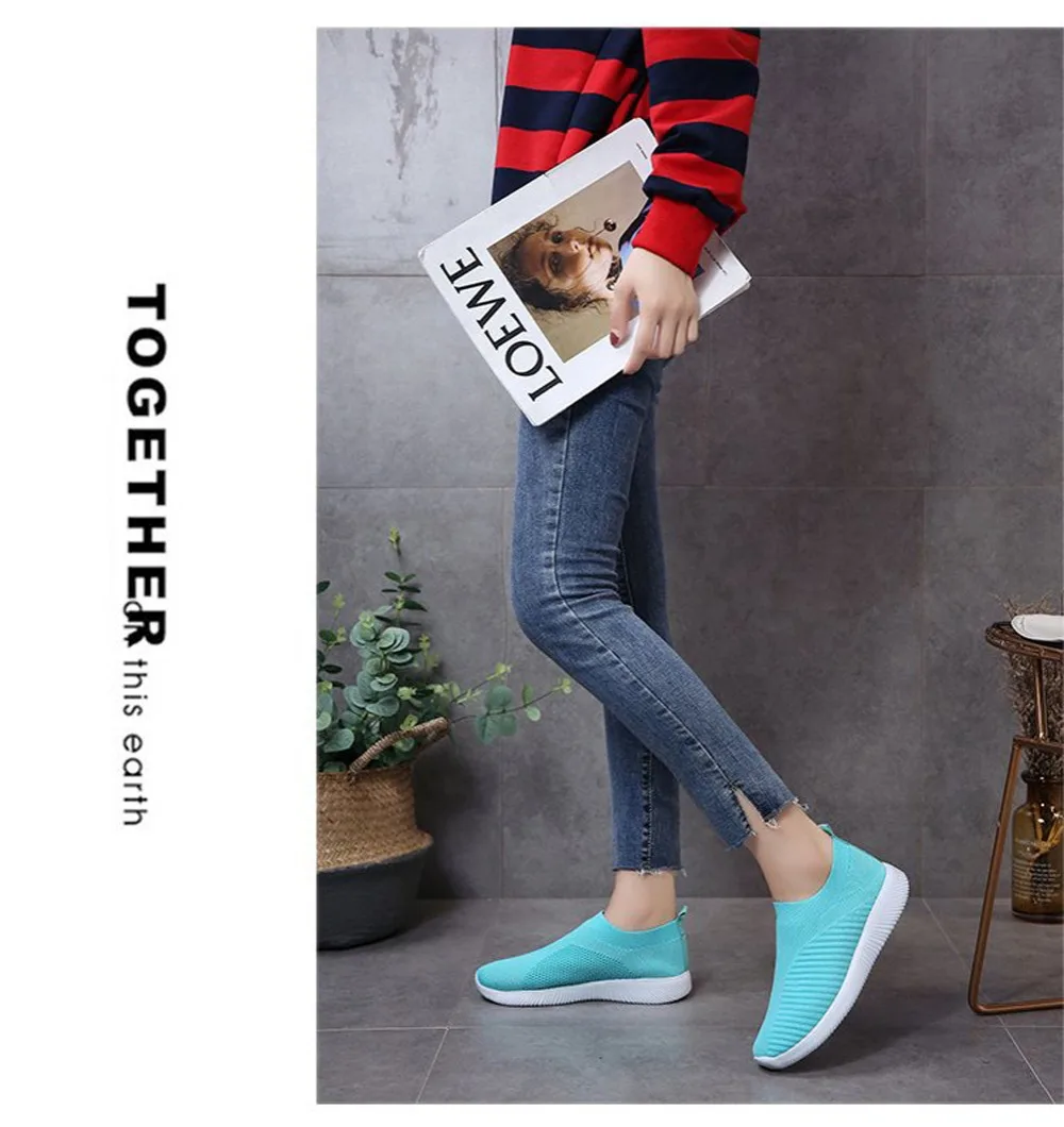 Кроссовки-носки женские сетчатые, вязаные, лоферы, без шнуровки, повседневная прогулочная обувь на платформе, WJ078